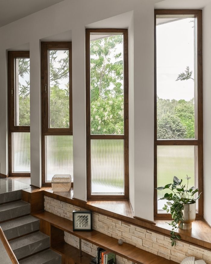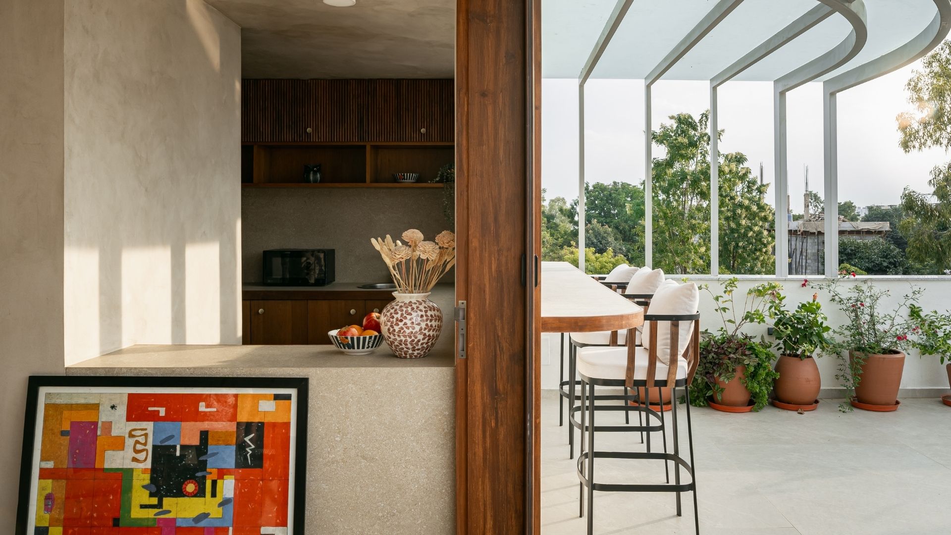 In 2020, they approached Aatira L. Zacharias and Bhyrav B.R, Principal Architects at 1LeapingFrog Studio to imagine “a home that was honest to its structure, filled with light and greenery, and generous in space for family and friends,” Aatira and Bhyrav explain. And from 2021, their duplex has witnessed prodigious renovations to now stand as HouseK, an exceptional residence in the lanes of Sarjapur.