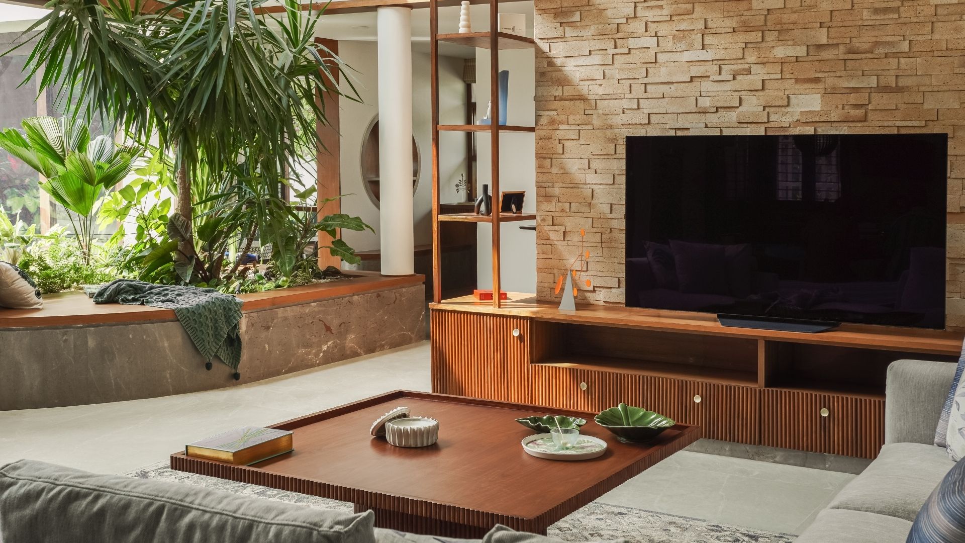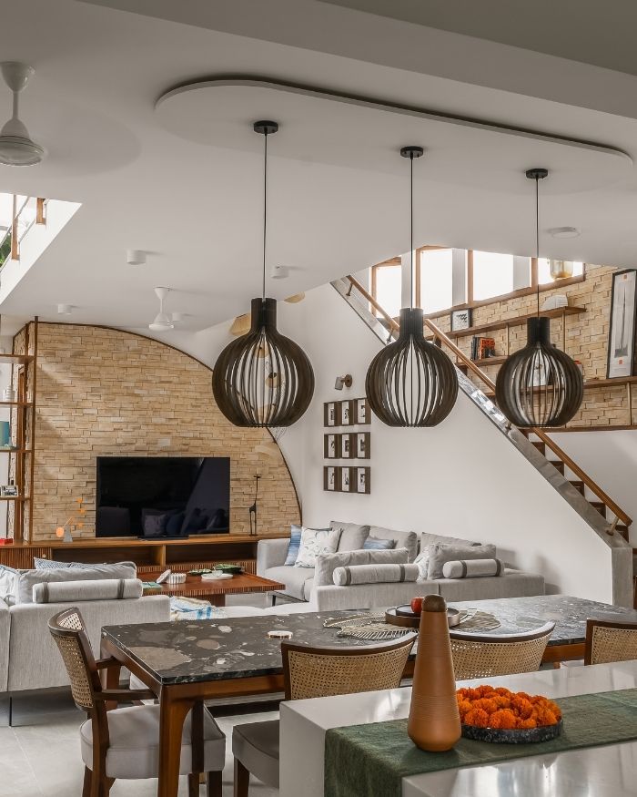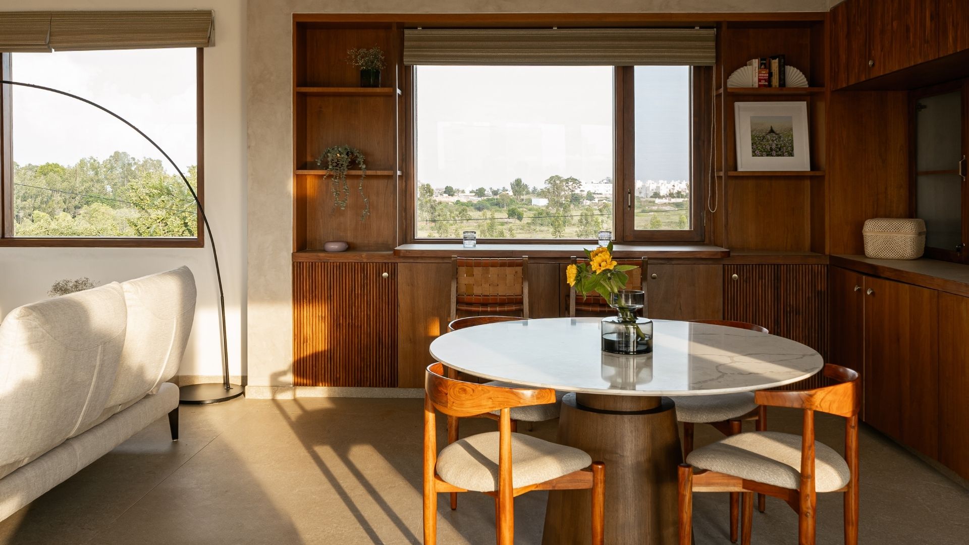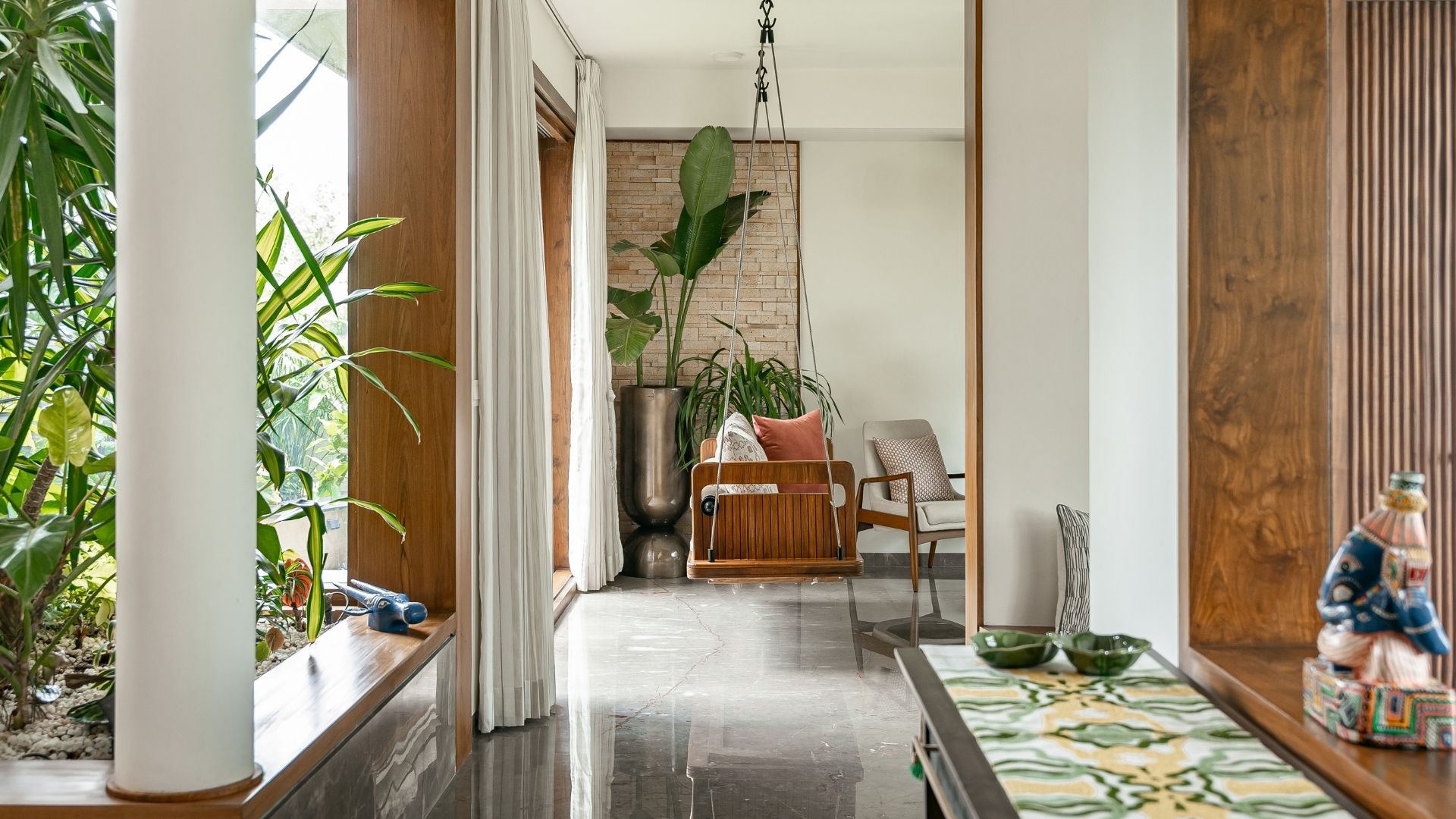 Deluged in quietude, a home in Bengaluru wears multiple hats. With a sprawling 5,300 sq ft duplex, the neighbourhood knows this home for hosting momentous soirees, while serenaded with verdant outdoor views from the living room couch. And who more fitting to own this than the Karunakarans? A couple in their early 60s who relocated to Bengaluru from Pune. With their roots in Kerala, they wanted their next chapter to breathe familiarity. With their daughter practising law in London and distance becoming a quiet guest in their lives, they longed for a house where they could find one another, no matter which corner they occupy.