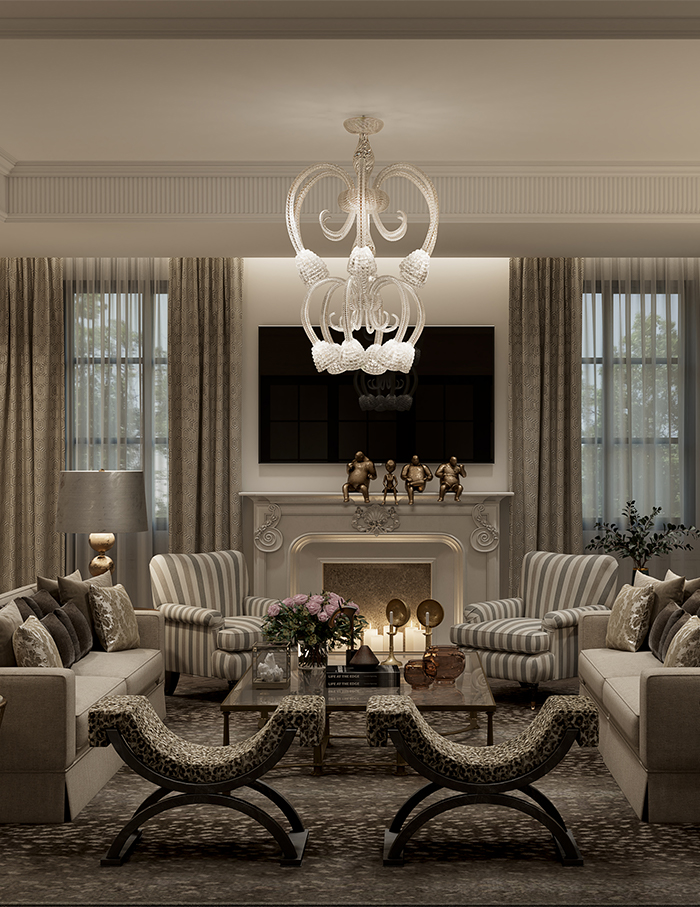 Adore intricate ornamentation but don’t want to go maximal? This Victorian-inspired fireplace designed by Aashi Gupta of her eponymous Aashi Gupta Designs delivers just that. A rather unconventional fusion of warm-toned, plush and contemporary elements with a subtly striking fireplace in this space creates an elegant yet cosy ambience. The composition of tall pillar candles lit up underneath the intricately carved marble mantle becomes the focal point of the space.