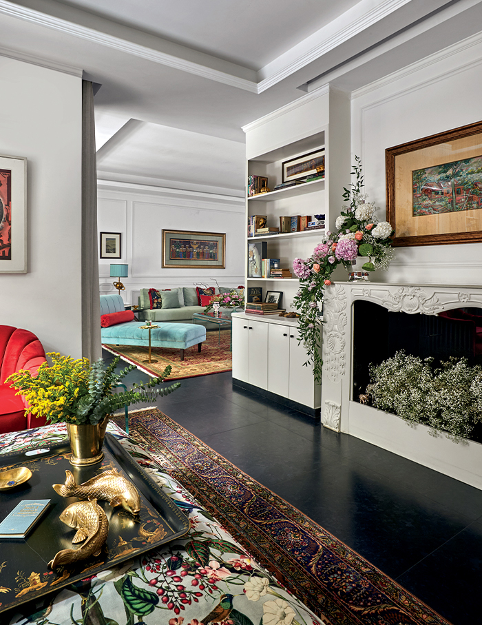 At Kalyani Saha Chawla’s South Delhi residence, the fireplace in the den is a thing of beauty. A traditional-styled fireplace turns into a visually-refined element indoors elevated with a fresh flower arrangement. The floral motifs on the fireplace itself come alive as the flowers bloom in and around it.