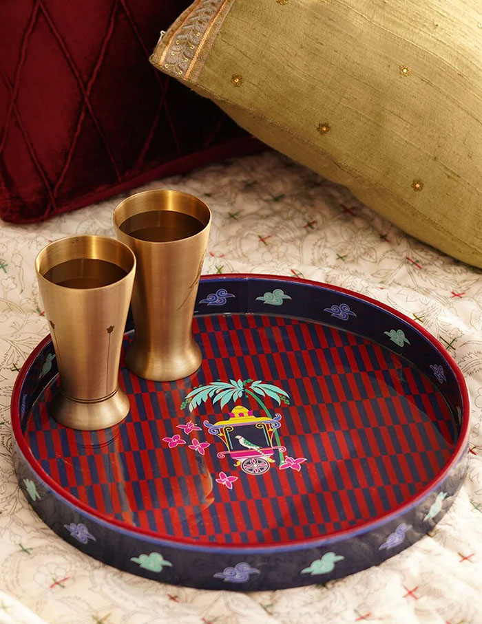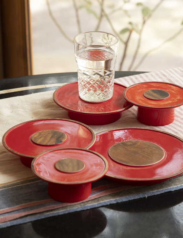 Lacquer coasters that double up as serving platters featuring Anantaya