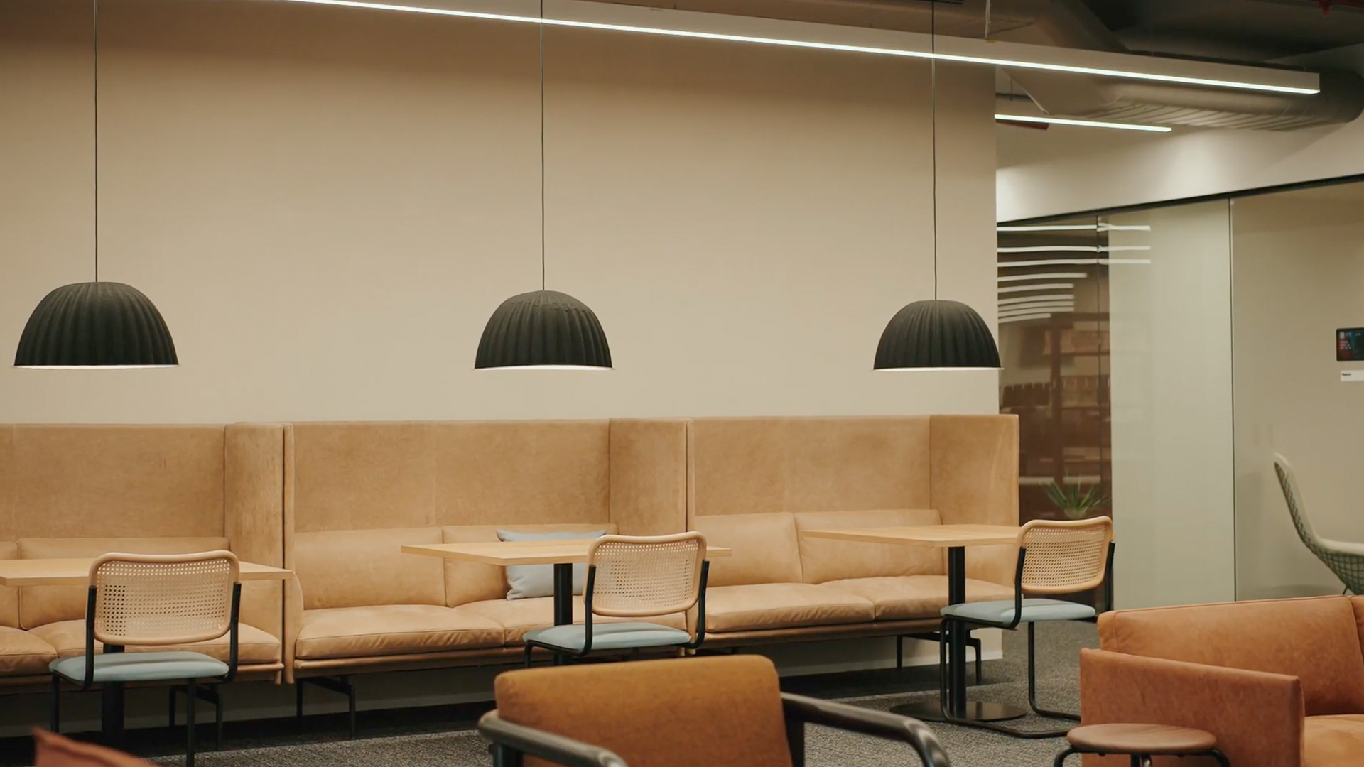 Natural light becomes an architectural protagonist, flowing generously across lounges, workstations, meeting rooms and open terraces. These outdoor pockets, unusual yet essential in an urban workplace, create a soft blur between nature and work, giving employees the autonomy to breathe, reset, and think differently. The environment encourages a pace that is efficient yet never rushed. Ergonomics remains one of the strongest pulses of space. Across the workspace, iconic furniture by Herman Miller, Knoll, NaughtOne, Muuto, spinneybeck | Filzfelt, Geiger and Colebrook Bosson Saunders are thoughtfully woven into settings that invite intuitive comfort. From task chairs engineered for long hours of support to collaborative seating that eliminates hierarchy, furniture becomes a catalyst for wellbeing rather than just a utility.