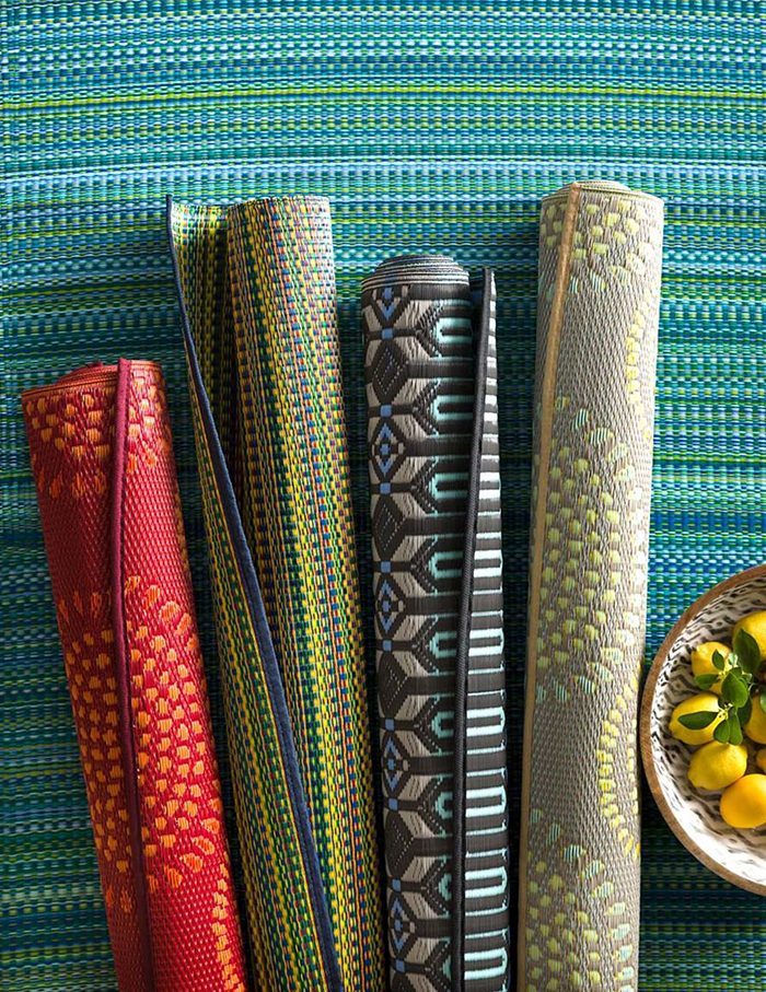 – Line your floors with striking coverings such as rugs and mats pieced together using recycled plastic waste or reclaimed rubber. Reborn in a riot of colour and patterns, not only do these enhance interiors, but they also double as great conversation starters.