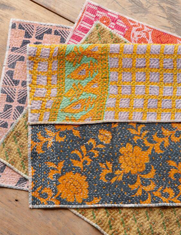 – Adorn your space with choices that reflect your new way of living with upcycled and eco friendly bed, bath and table linens. These can be made using old cloth scraps quilted or patched together with intricate embroideries or even refashioned fabrics. Commonly dyed and printed using natural or vegetable inks, these non-toxic, skin friendly textiles leave you feeling mentally and physically refreshed.