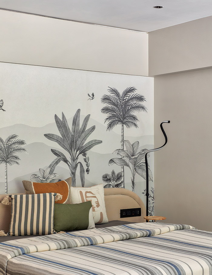 “Our home needed to be a reflection of smaller details brought together beautifully to make a space that resonates with us,” says Krutika. It is the medley of elements here that is truly engaging. Like the guest bedroom’s bold tropical print wallpaper, which is elegantly finished in black and white— thus, becoming both dramatic and understated.