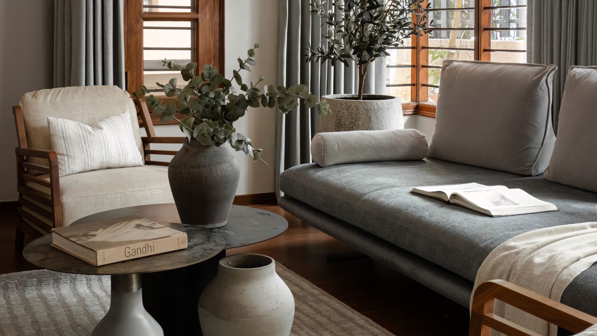 The living room furniture is sourced from Dtale; Photography by Jubin Johnson