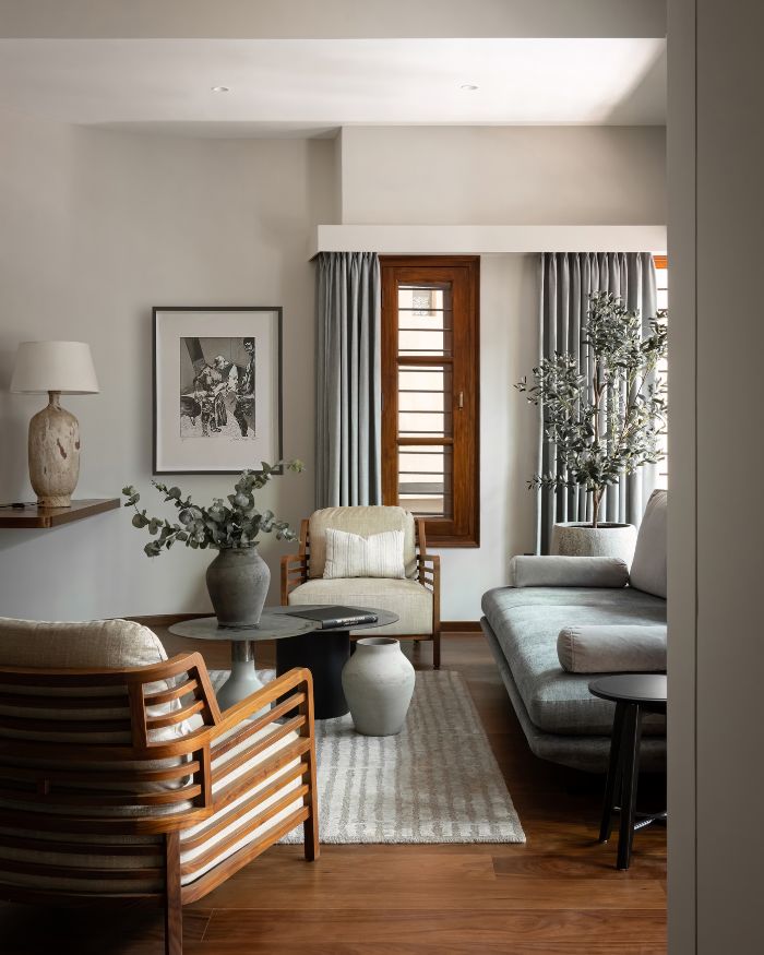 Furniture from Ventura, rugs from Jaipur Rugs, flooring by Squarefoot; Photography by Jubin Johnson