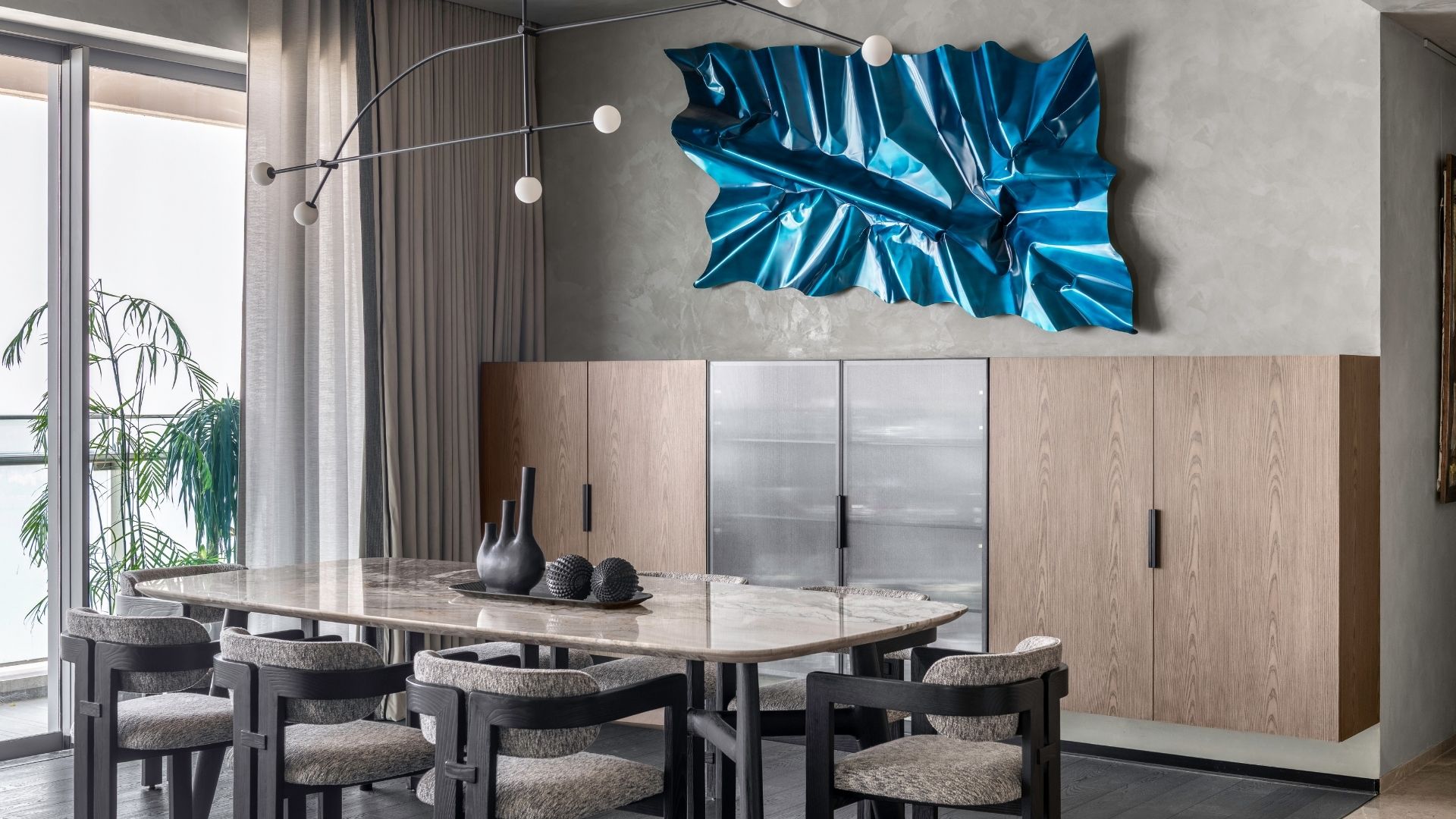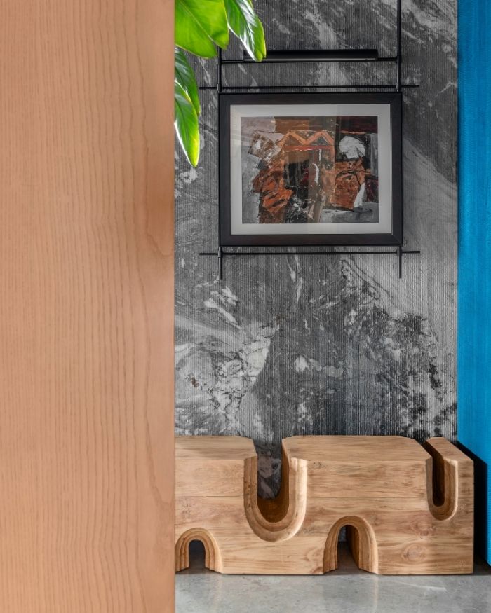 Making the ocean a backdrop for the family’s daily activities, principal architect Shobhan Kothari explains, “The layout was approached with a strong intent to blur the boundaries between inside and outside, ensuring each space felt visually and emotionally connected to the sea,” who completed the project with Prajakta More, Priyanka Rahate and Minal Raut. Reflecting the outside, within, this home seems to bend the boundaries of the space it sits in, welcoming the colours and movements of the sea inside.