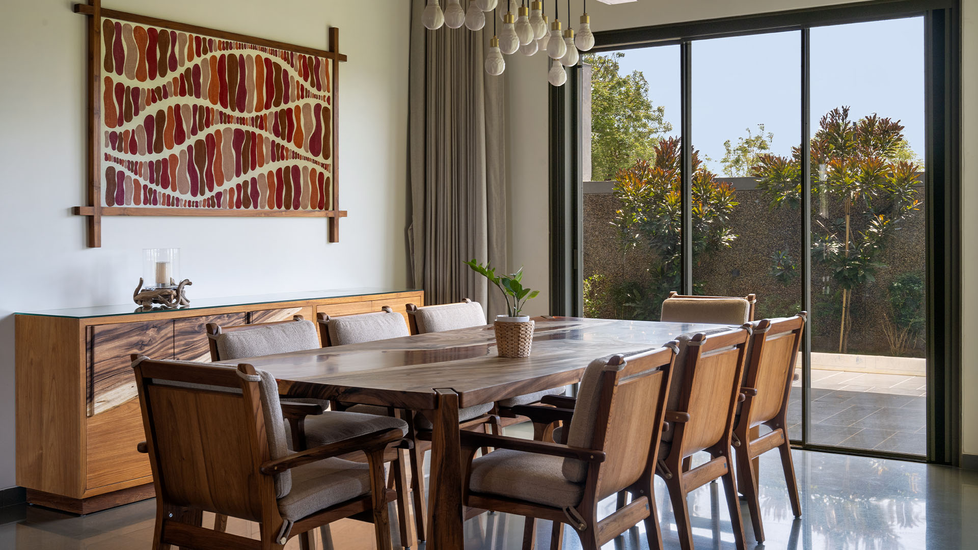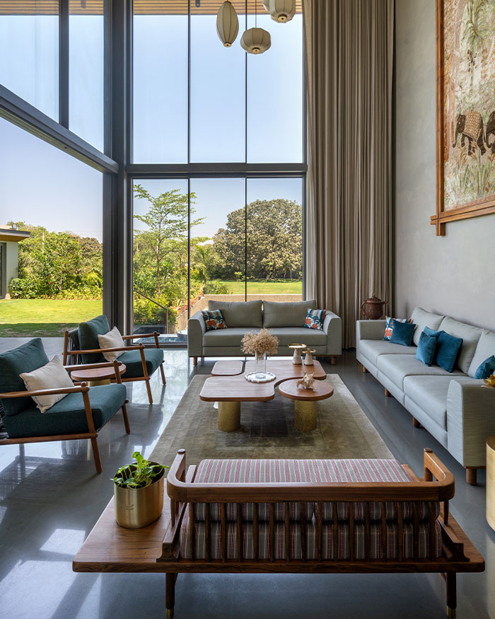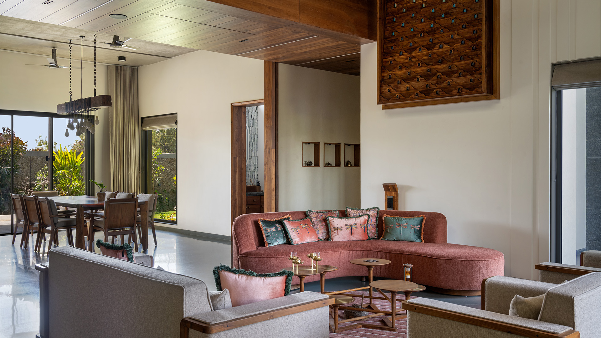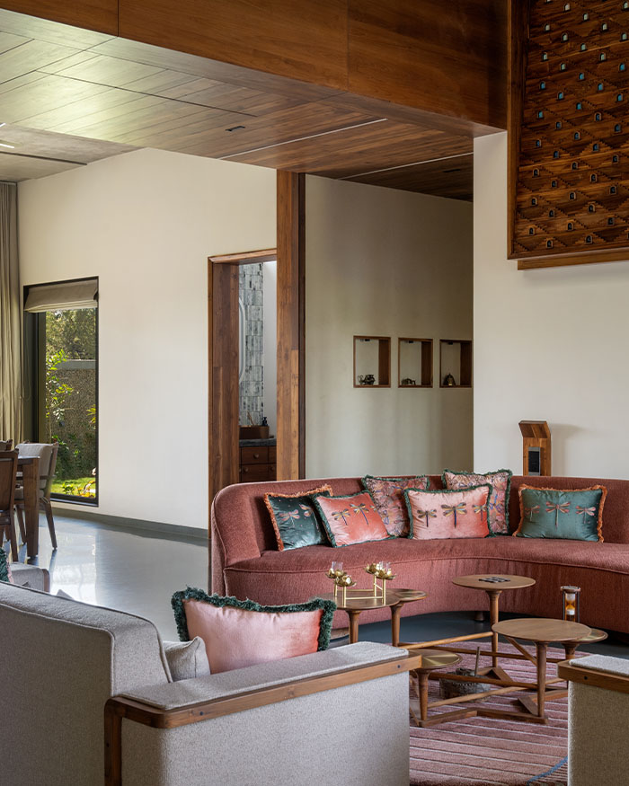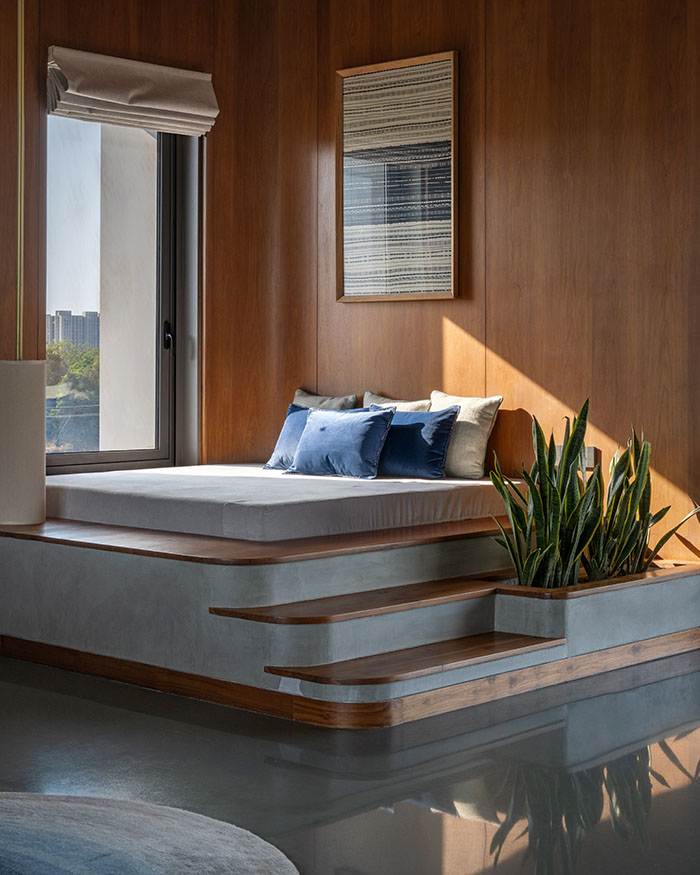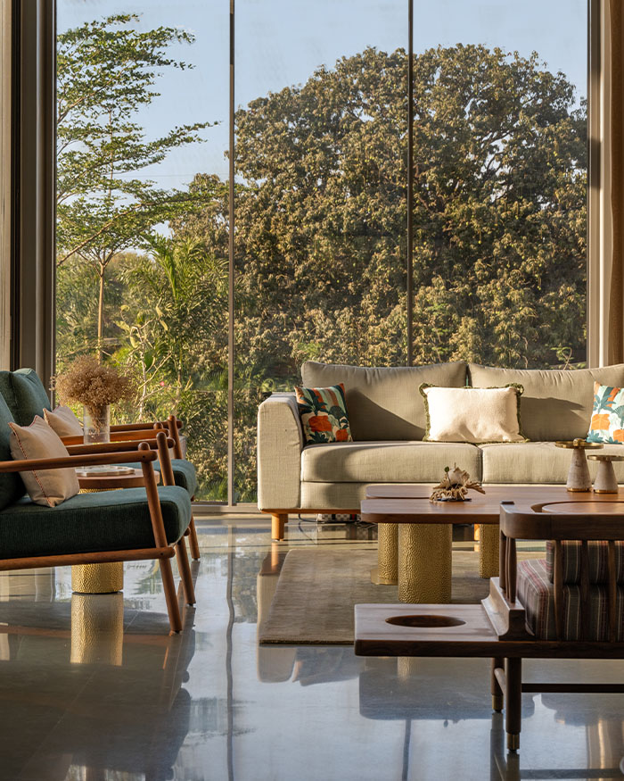 For a three-generational family in Ahmedabad, privacy and togetherness had to be the two sides of the same coin — a place with quiet corners that could hold a full house. Spread across 12,000 sq ft and dubbed the House of Floating Slabs, Studio Espaazo gathers three generations under one roof through their design. It borrows the cadence of Indian craft in chiselled granite, timber and woven textiles, yet speaks of the geometry of modern design.
