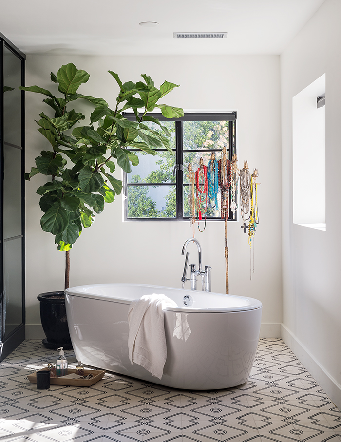 The master bedroom is curated with a bathtub from Toto and a dash of green; Photographs courtesy The Novogratz