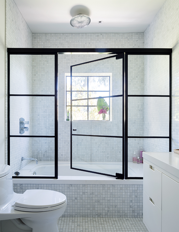 One of the washroom features a window side bathtub and subway tiles; Photographs courtesy The Novogratz