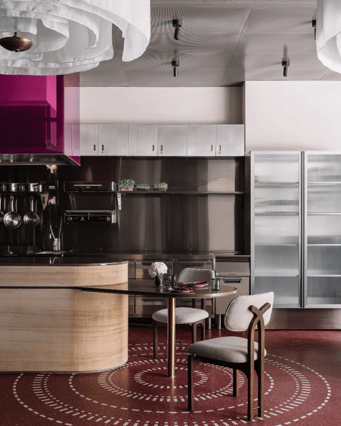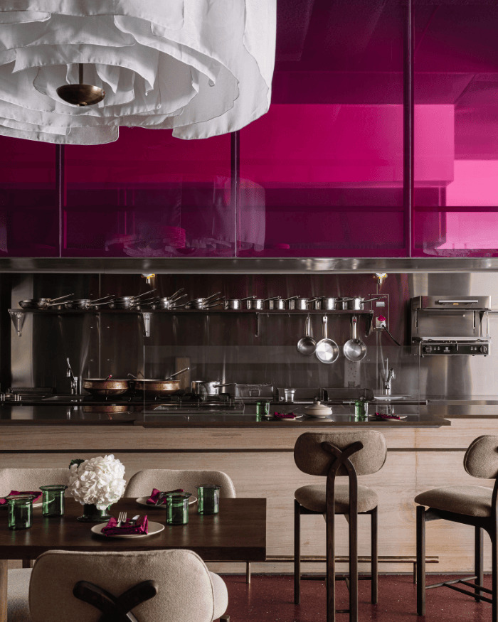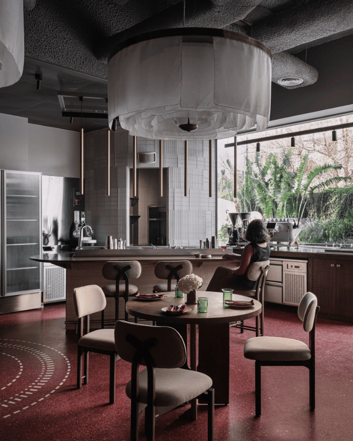 The area evokes a close relationship between the food prepared and the guest, coercing dialogue in a modern kitchen space. “We intended to reimagine what a space serving Indian cuisine could look like. So, rather than conforming to preconceived ideas and themes, we began exploring ways to break the notion of a space needing to look Indian to feel Indian,” says Asha.