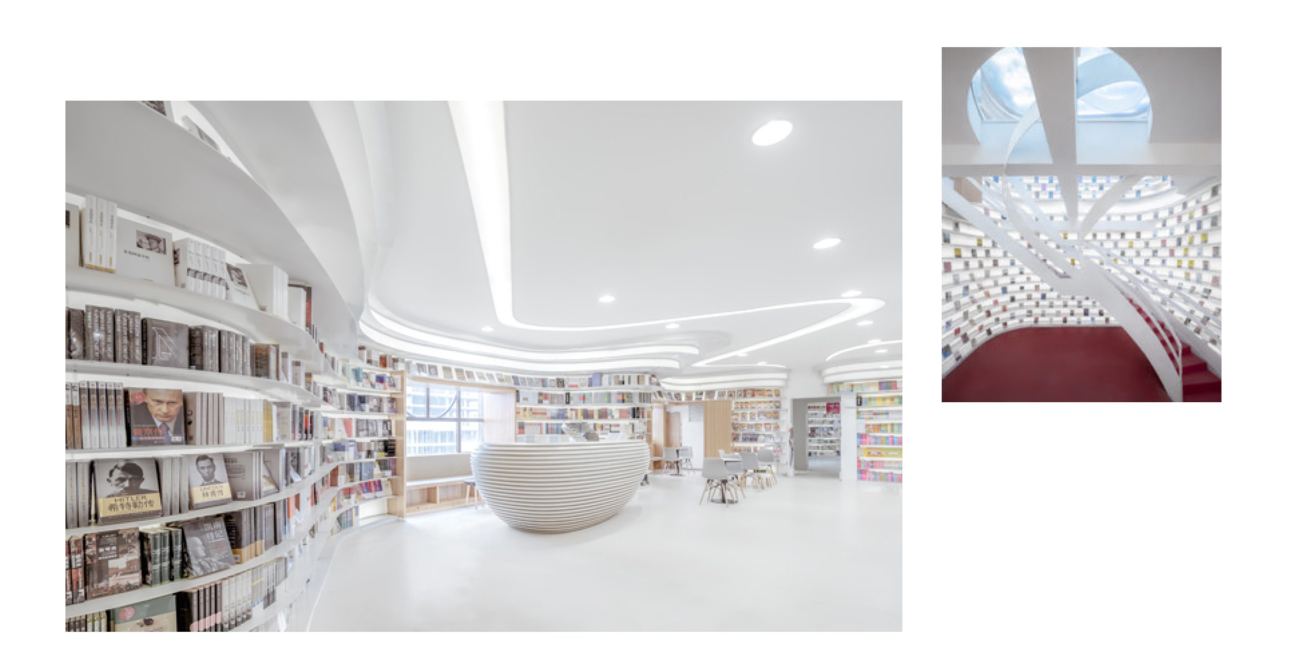 Shanghai based Wutopia Lab’s latest design for a bookstore in Xi’an, one of the most ancient cities of China, holds the promise of unleashing an unparalleled space. Founder and architect, YU Ting, says, “My architectural practice reiterates our everyday life through immense imagination and dramatic artistic expressions. Transforming reality into ‘magic reality’ and creating an illusion that uncovers bits of truths in our life, the Zhongshu Bookstore pays tribute and performs a white Divine Comedy to the capital of thirteen dynasties — Xi’an.” The basic space of the bookstore consists of popular book recommendation and public reading areas. However, moving away from the ordinary, the idea to create a reading paradise over the ‘clouds’ where light and free space are show stopping elements, started to take shape. Challenging the use of traditional materials, the design firm brought in 5 mm thick steel plates to customize curved bookshelves.Digital concepts and cutting edge technology came into play to craft a canvas where each steel plate was optimized through programming, processed by CNC machine tools, and then assembled on site according to the numbering. The architect adds, “Moving away from a design which allowed for direct entry into the bookstore, a glittering entrance was created in the commercial space.” The futuristic design element of a pillarless, white, curvy staircase creates a surreal effect akin to floating in a cloud. The Zhongshu Bookstore represents the great urban revival that Xi’an is currently experiencing.
