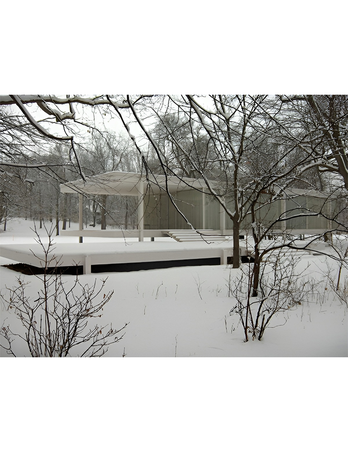 An iconic project in the history of modern architecture, the Edith Fransworth House was constructed as a one-room weekend retreat in the 1940s. On the outskirts of Plano, Illinois, the building represents the emergence of a glass house structure with a clear span interior. As the surroundings get covered in snow, the building blends in displaying a noir effect.