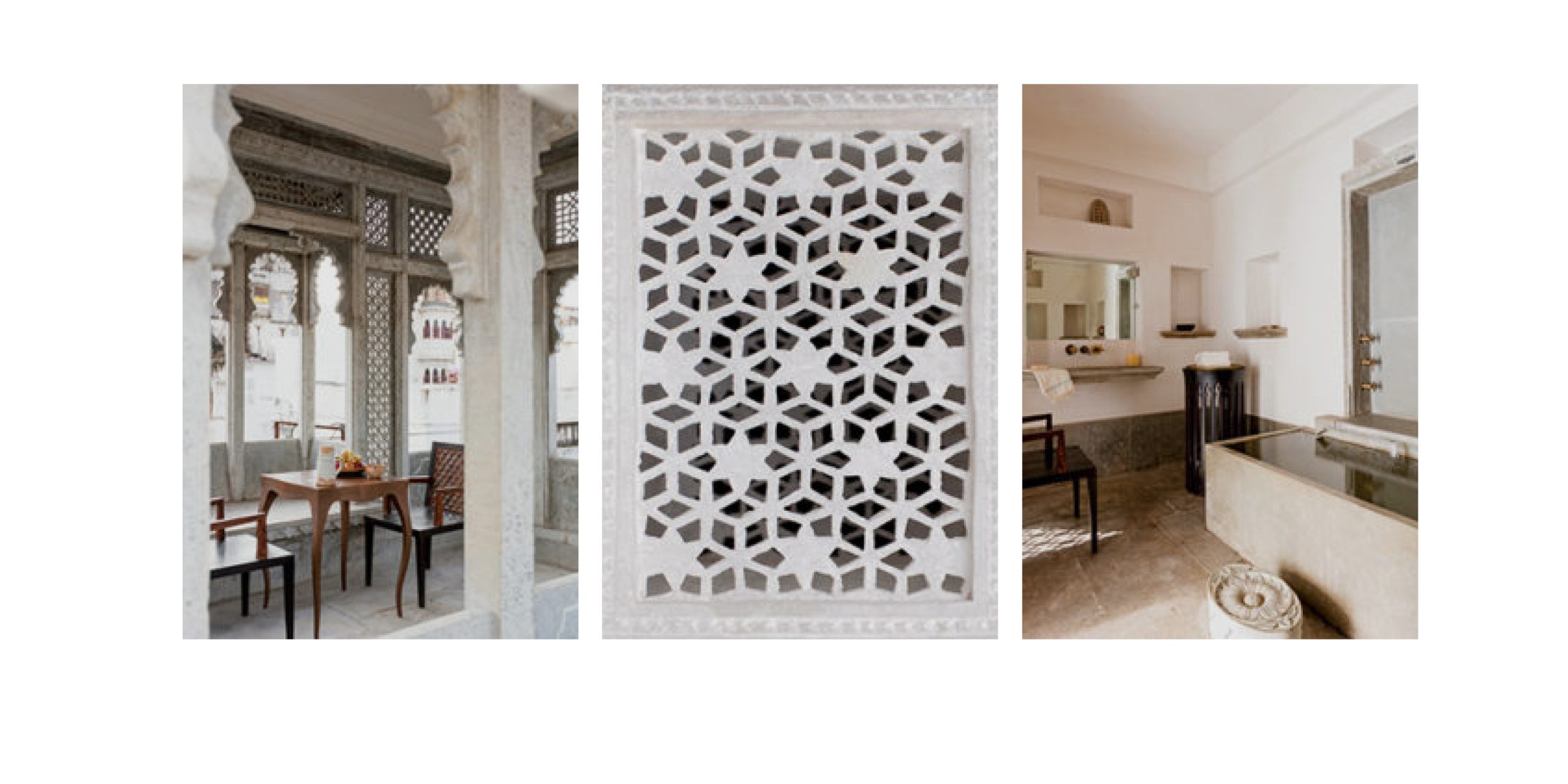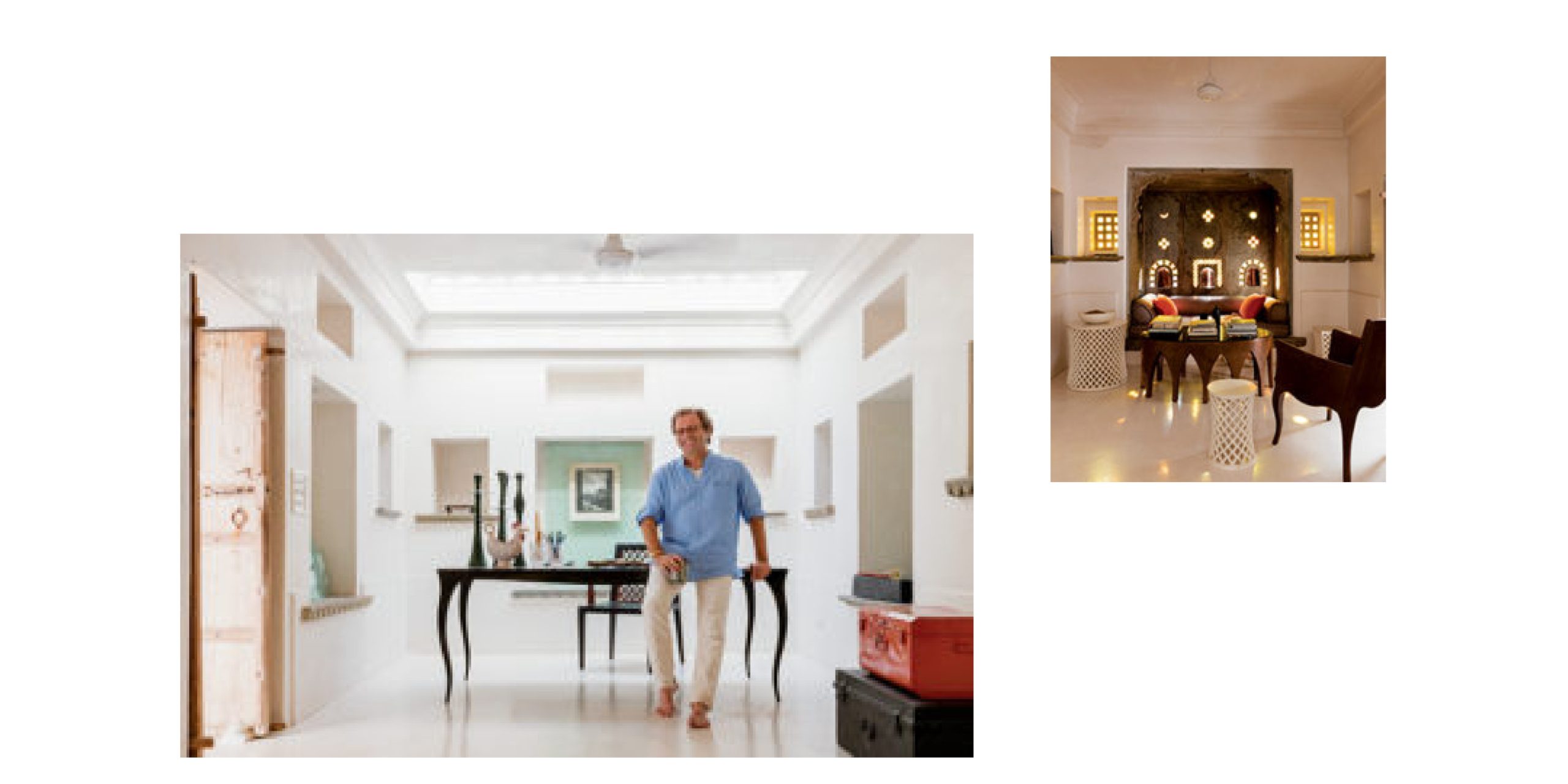 A deep love for indigenous craft and frequent visits to work with the artisans, nudged Paul Mathieu to find a coop where he could sketch, cook and breathe at his own pace. This haveli “on the verge of collapse” was quite a discovery, thanks to local restoration expert Monish Paliwal. A six month project extended to three years – Paul Mathieu was introduced to historic finishes, which he knew he just had to include in this mini palace. The white foundation on the first floor, for instance, was coated multiple times with lime, then polished with coconut oil and agate stone. Even on the hottest days, this surface stays cool throughout the year! A fitting contrast to the chaos and colours of Udaipur, Paul’s home follows a quiet palette of chalk ivory and calm grey. The spacious, airy rooms have deliberate hints of wood and aged metal, most from the prototype furniture Paul created. While the base level has two bedrooms and an open courtyard that expands to a bamboo roofed meeting area, the first floor houses the kitchen, Paul’s reading room/boudoir and study with a skylight right above his work desk. On the terrace is a jali work tibari made for the house, where he savours brunches or the one-off Sufi concert with his friends. “I live with an open mind,” he proclaims, when illustrating why none of the areas have one definitive purpose. “In India, a room becomes anything you want it to be – if you feel like eating dessert, a plate is served to you! I love that about this country’s culture