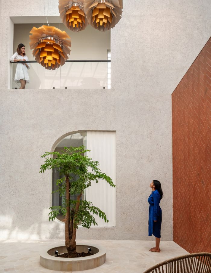 The Lumiflakes texture on the walls of the courtyard is by Asian Paints; Photographs by suryan//dang