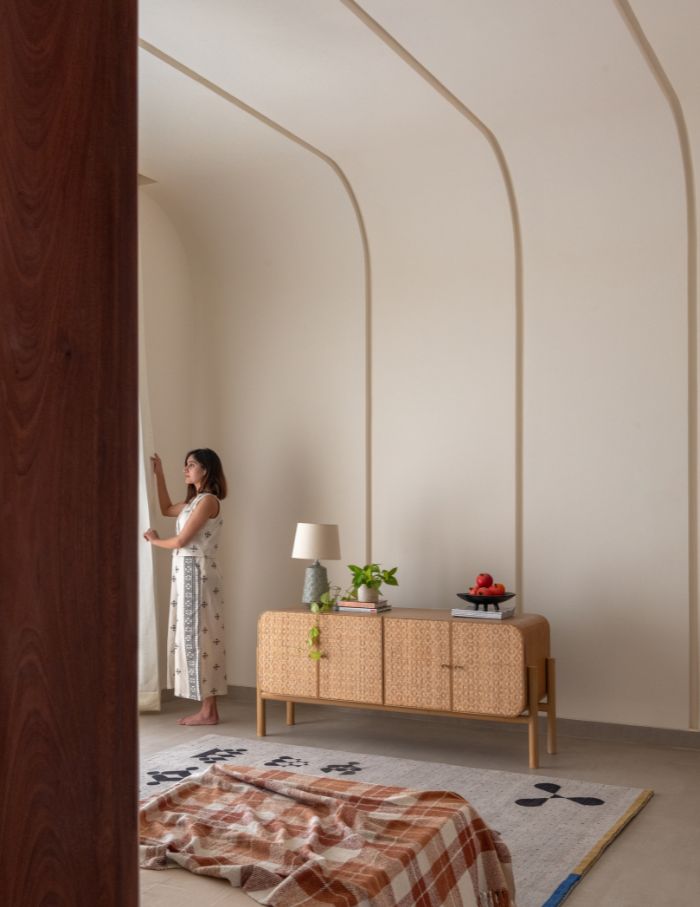 A subtle and innovative introduction of curvilinear geometries throughout the home transpires into an unusual calm within the space.  B A S I C S  Studio takes you on an enchanting journey, interconnecting one space to another while adding a subtle softness to each space.