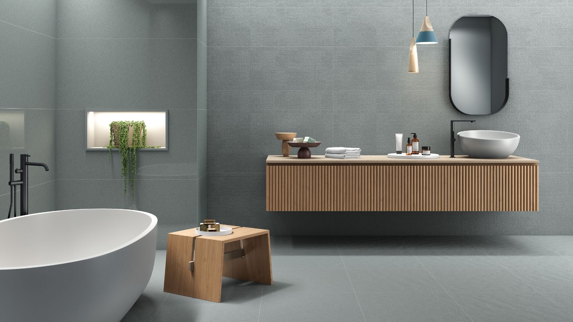Stunning in grey, Simpolo gives the bathroom an elevated feel; Photograph courtesy Simpolo
