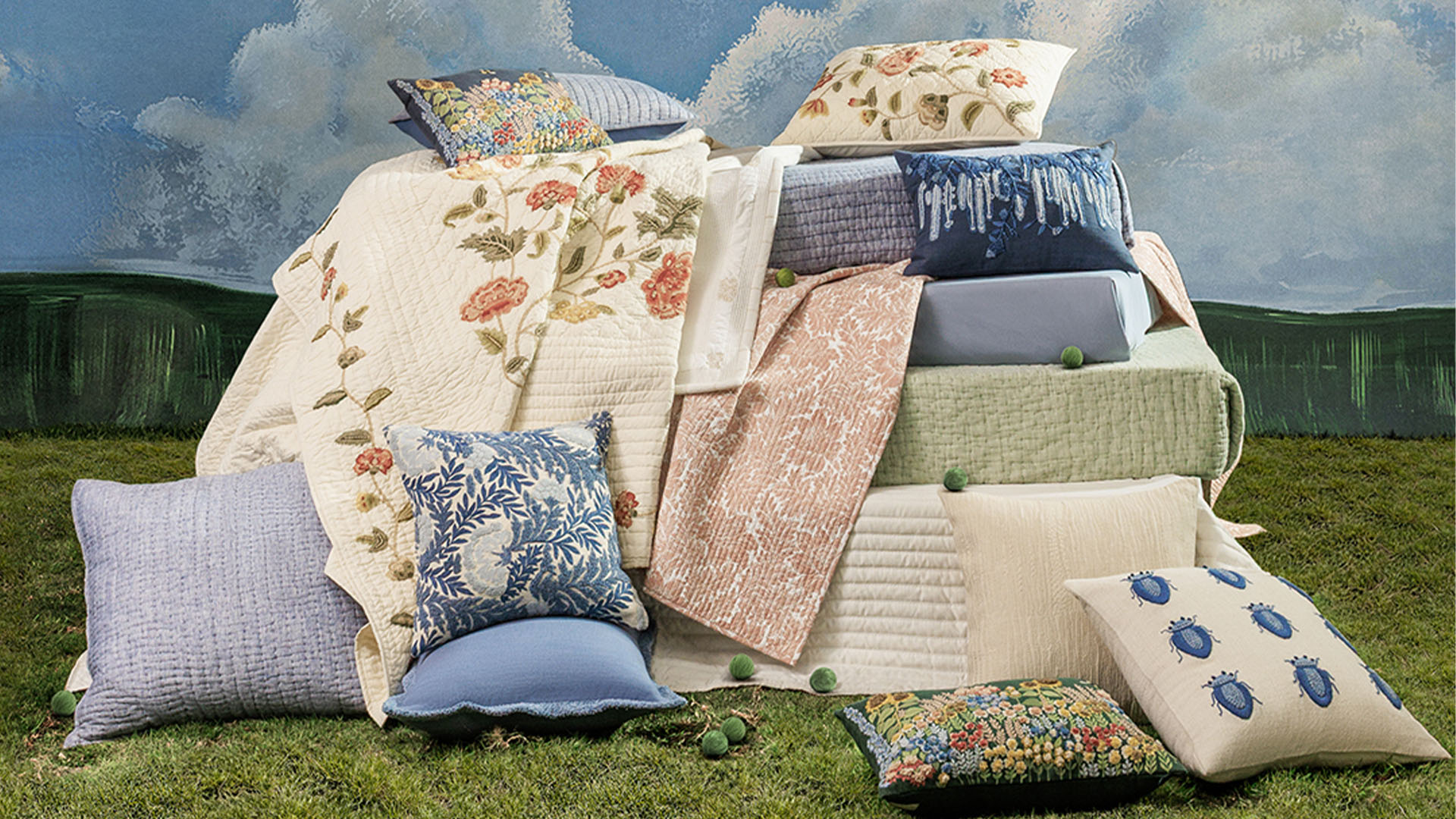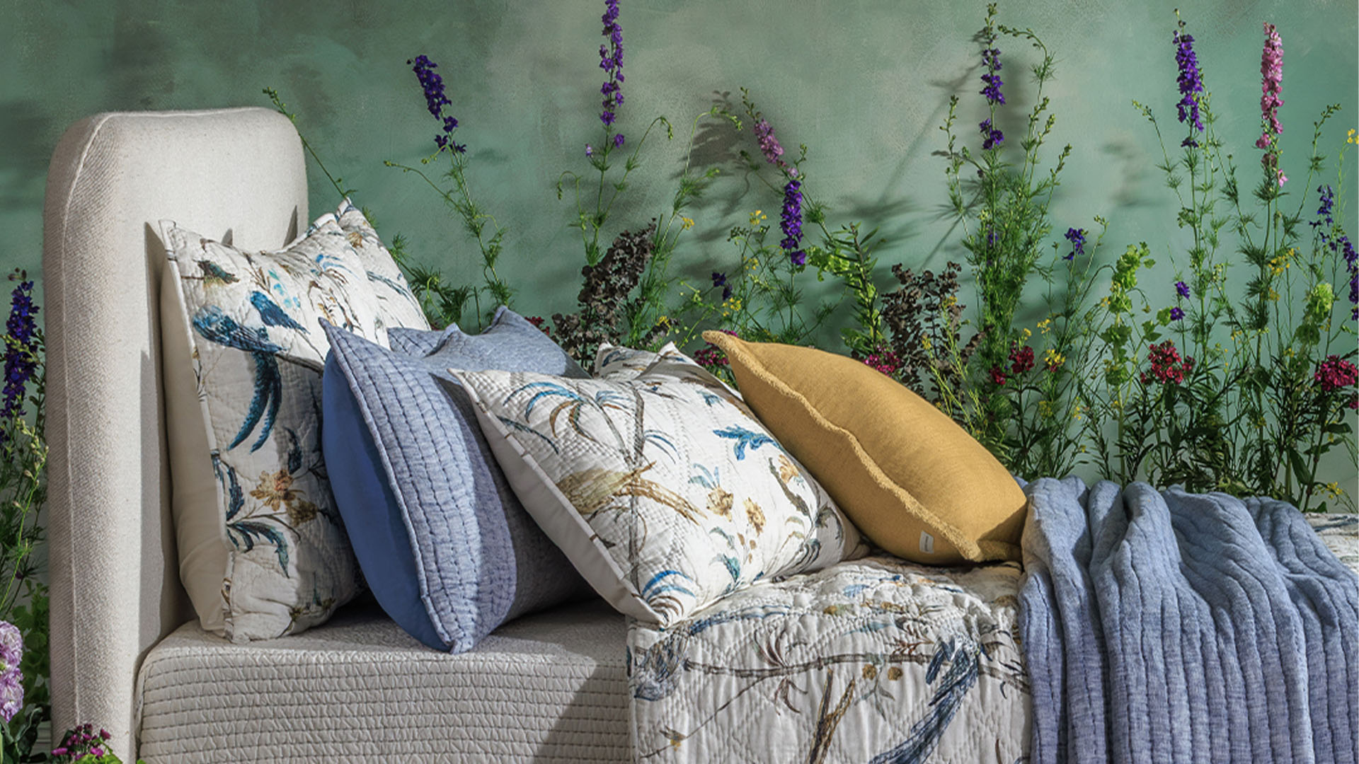 The bedroom becomes the central chapter of this narrative through quilted bedspreads and coordinated Euro shams. Designs such as Victorian Bloom, Morning Song, Floral Blocks, Retreat, Sheer Linen and Maze explore a spectrum of inspirations — from botanical prints and countryside motifs to modern quilting patterns. Crafted using techniques that range from computer quilting to hand quilting and intricate embroidery, these pieces bring depth, texture and understated elegance to contemporary spaces.