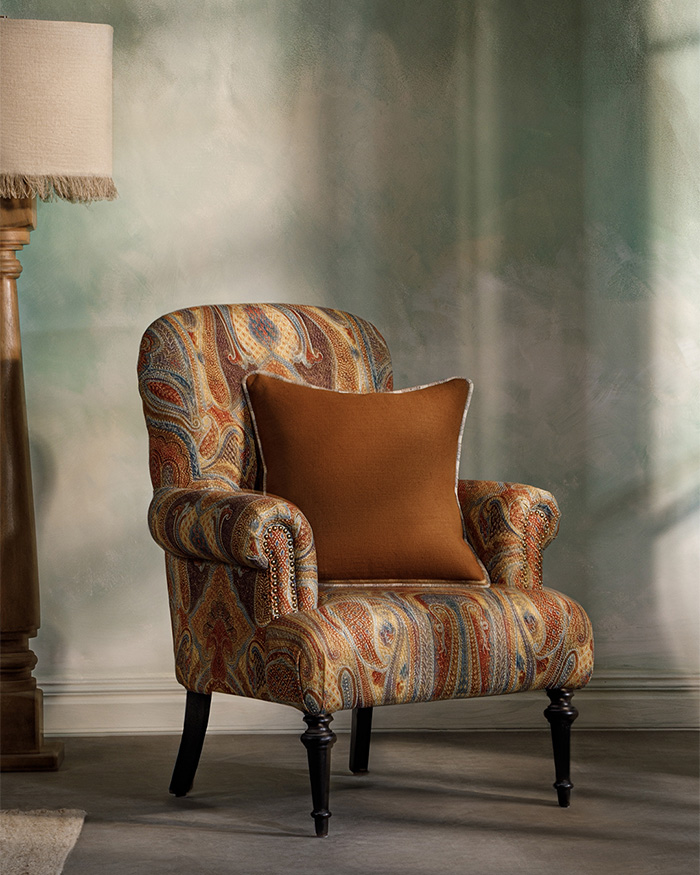 Across living areas, decorative cushions add layers of storytelling and character. Designs like Garden Spray, Canopy, Frondage, Garden Bug and Robin’s Nest draw from meadow florals, foliage and the delicate presence of garden creatures. Executed through crewel embroidery, adda work, towelling embroidery and loop techniques, they introduce richness and artisanal detail. Balancing these organic expressions are more structured, geometric designs such as Bold Blocks, Brick Cane and Checkered — offering a harmonious interplay between fluidity and form.
