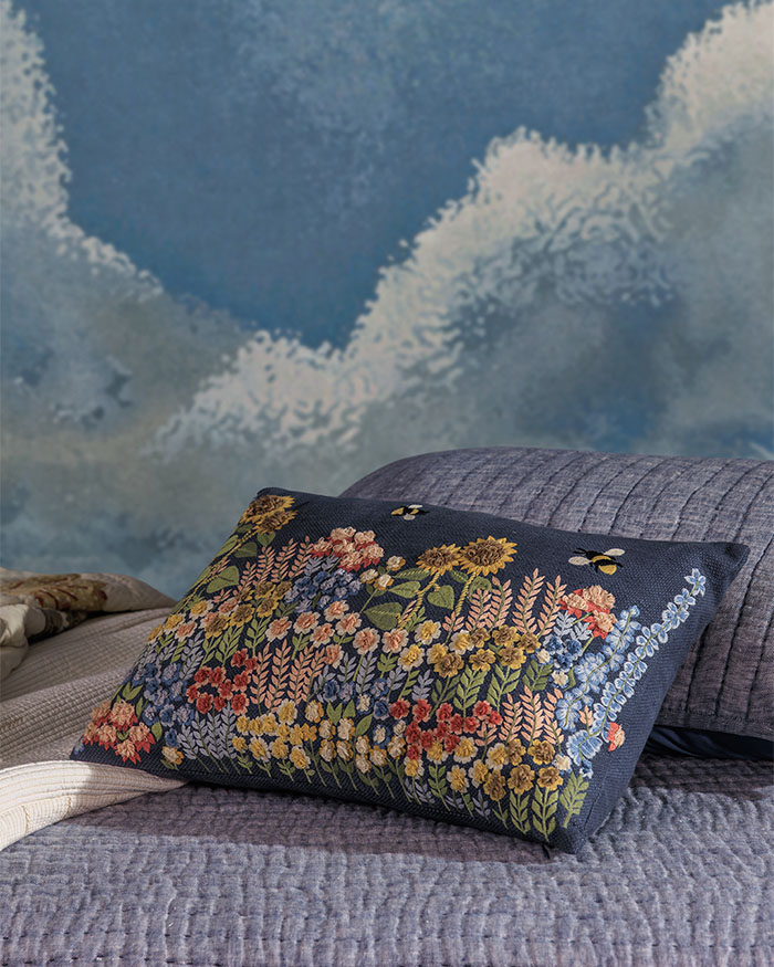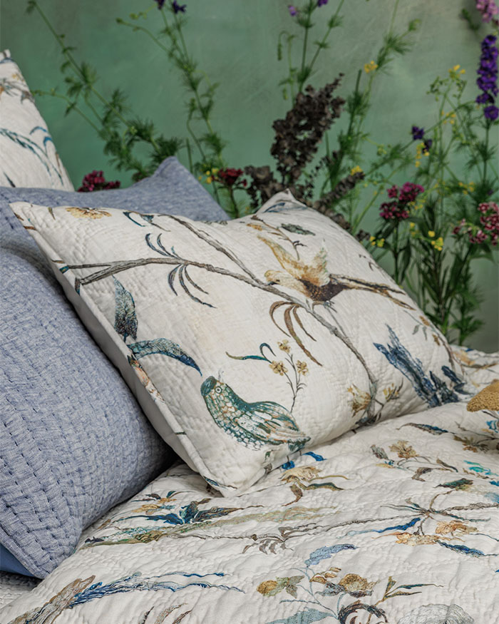 The bedroom becomes the central chapter of this narrative through quilted bedspreads and coordinated Euro shams. Designs such as Victorian Bloom, Morning Song, Floral Blocks, Retreat, Sheer Linen and Maze explore a spectrum of inspirations — from botanical prints and countryside motifs to modern quilting patterns. Crafted using techniques that range from computer quilting to hand quilting and intricate embroidery, these pieces bring depth, texture and understated elegance to contemporary spaces.