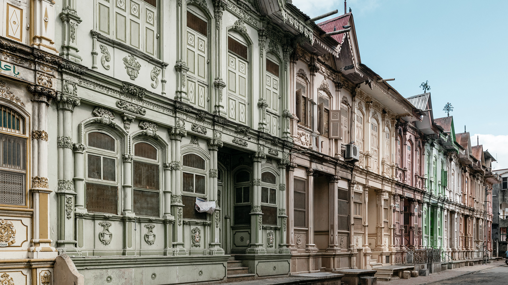 The second defining layer arrived in the late 19th and early 20th centuries, when the Dawoodi Bohra mercantile community financed and constructed an extraordinary concentration of domestic architecture. These Vohrawad mansions, built roughly between 1870 and 1930, reflect the global exchange economies of the Bohra diaspora, integrating European Neo-Classical facades, Art Deco geometry, Baroque detailing, Islamic ornament and Gujarati domestic planning into a singular urban fabric.