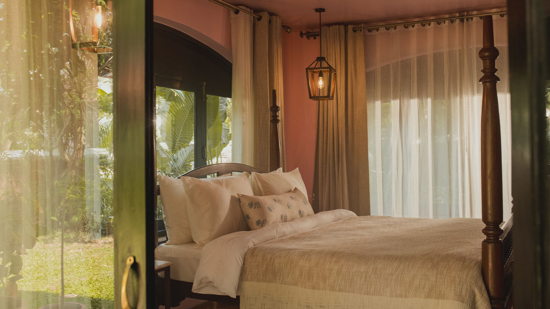 So you’d understand why I’d be reluctant to admit my first hour back in the coastal state, after a decade, was not spent making amends — it was spent sleeping. One moment, I was sending my rain-soaked friends back in Mumbai pictures of the sunny Goan airport. An hour-long car ride (roughly equivalent to one very long nap) to Saligao later, I awoke to the sight of Brij Paraiso’s sun-speckled entrance. The boutique property’s arched gateway, painted white with delicate florals, dazzles in the daylight. There’s an immediate lull in the air: no traffic, no crowds, no BMC contractors drilling away to glory. Only gentle birdsong remains.