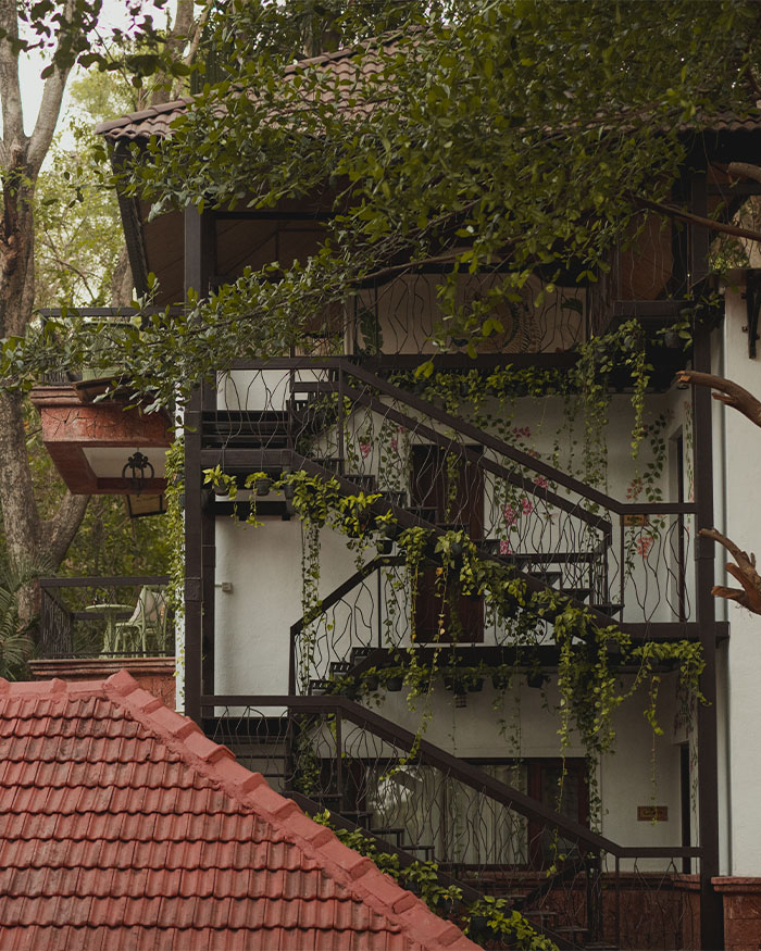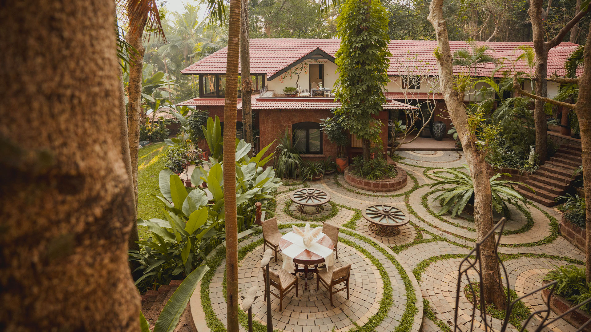 Eager to walk off the delicious drowsiness that always follows a fulfilling meal, I set off on foot to explore the property. Each of the nine rooms within has been named after a Goan village. Great care (and extensive spatial planning) has been taken to ensure each window opens to the lush outdoors. Case in point, my balcony perches above the outdoor pool, giving me a bird’s eye view of the green premises. To my left lie the terracotta-tiled roofs, covering the low-slung common areas. The best way to understand the layout (easily navigable for the directionally challenged) is to equate it to a tree: the dining, kitchen and entrance lie along one singular axis, while the rooms branch out towards three serene corners. My room, if you’re curious, rests in the leftmost corner, accessible by a metal staircase dripping with curtain creepers. In the sunlight, even Led Zeppelin would concede it as a strong contender for the muse behind “Stairway to Heaven”.