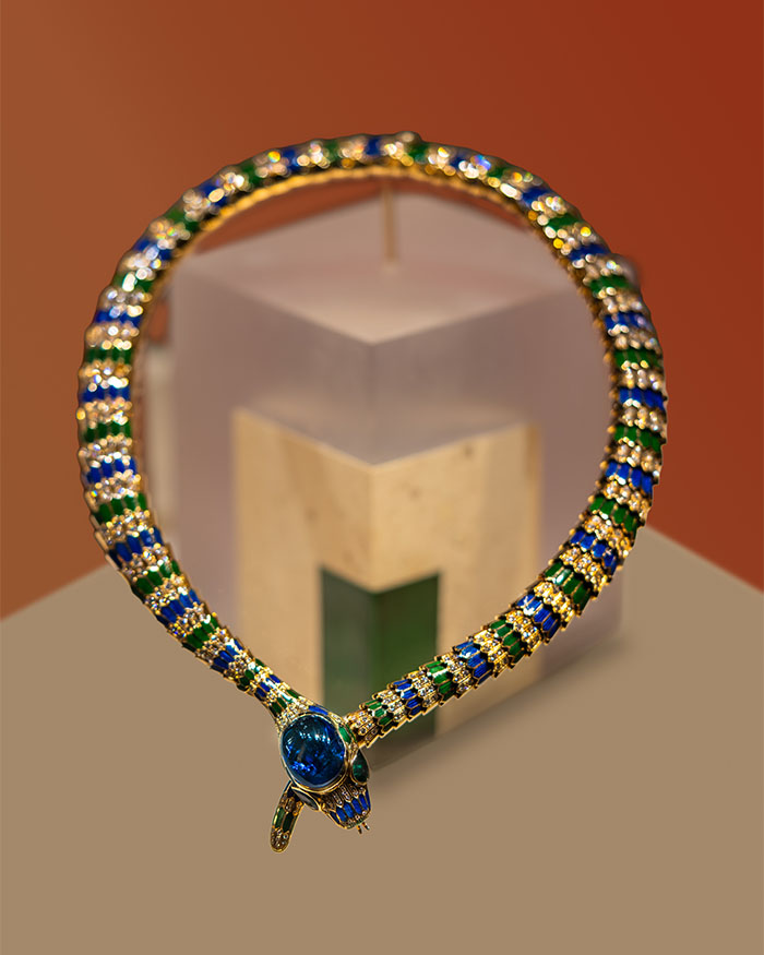 Call it a collective revulsion of the arcane and uncanny. Why do we fear what we cannot control, and when does that fear morph into awe? As I stand in the Art House of the Nita Mukesh Ambani Cultural Centre (NMACC) Mumbai, surrounded by Bvlgari’s bejewelled ornaments and curated objects of art drawn from life, the motif of the serpent recurs throughout.
