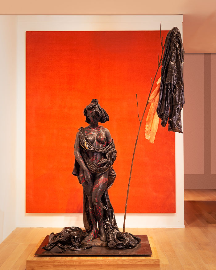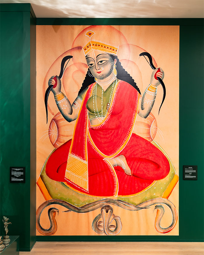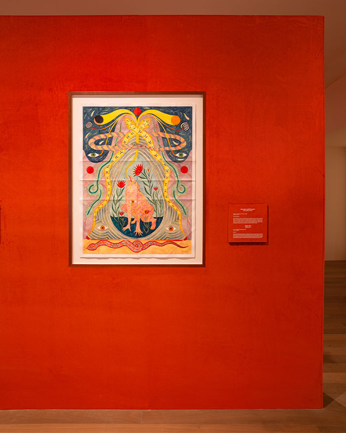 In cultures across the world, snakes are seen as duplicitous creatures, associated with trickery and treachery. Sean Anderson, the artistic director of Nature Morte and the mind behind the exhibition, describes the Nāga as a universal symbol. “If we remove the physicality of it, and just think about it as a metaphor, it’s about self-reflection and shape-shifting. I can peel off my skin and become a new being. It is an image that goes from one context to another. It’s visible. It’s invisible. It is in itself a world,” he tells us.