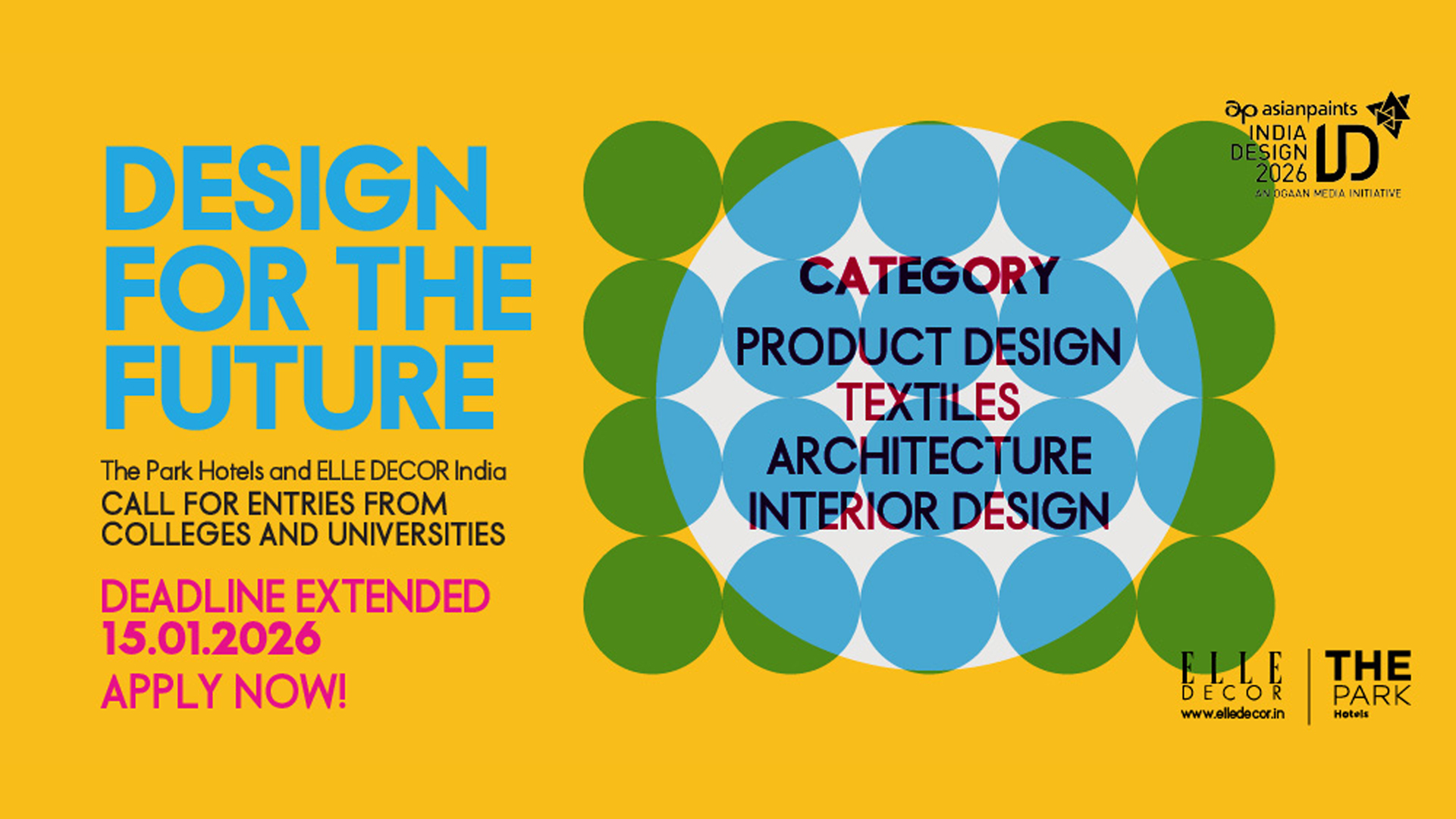 The last date for entries for The Park Elle Decor Student Contest is 15.01.2026