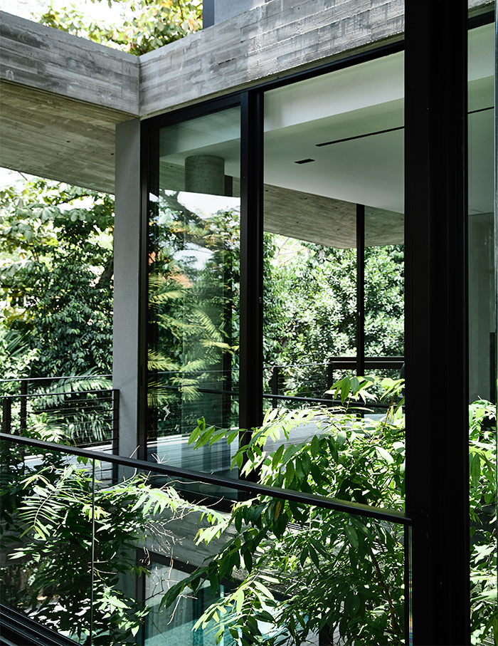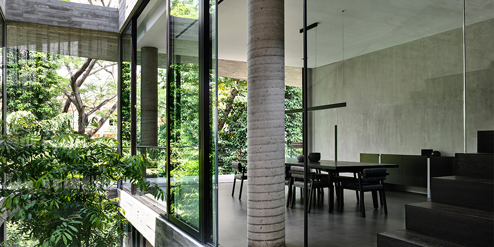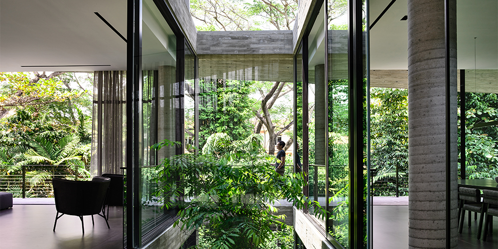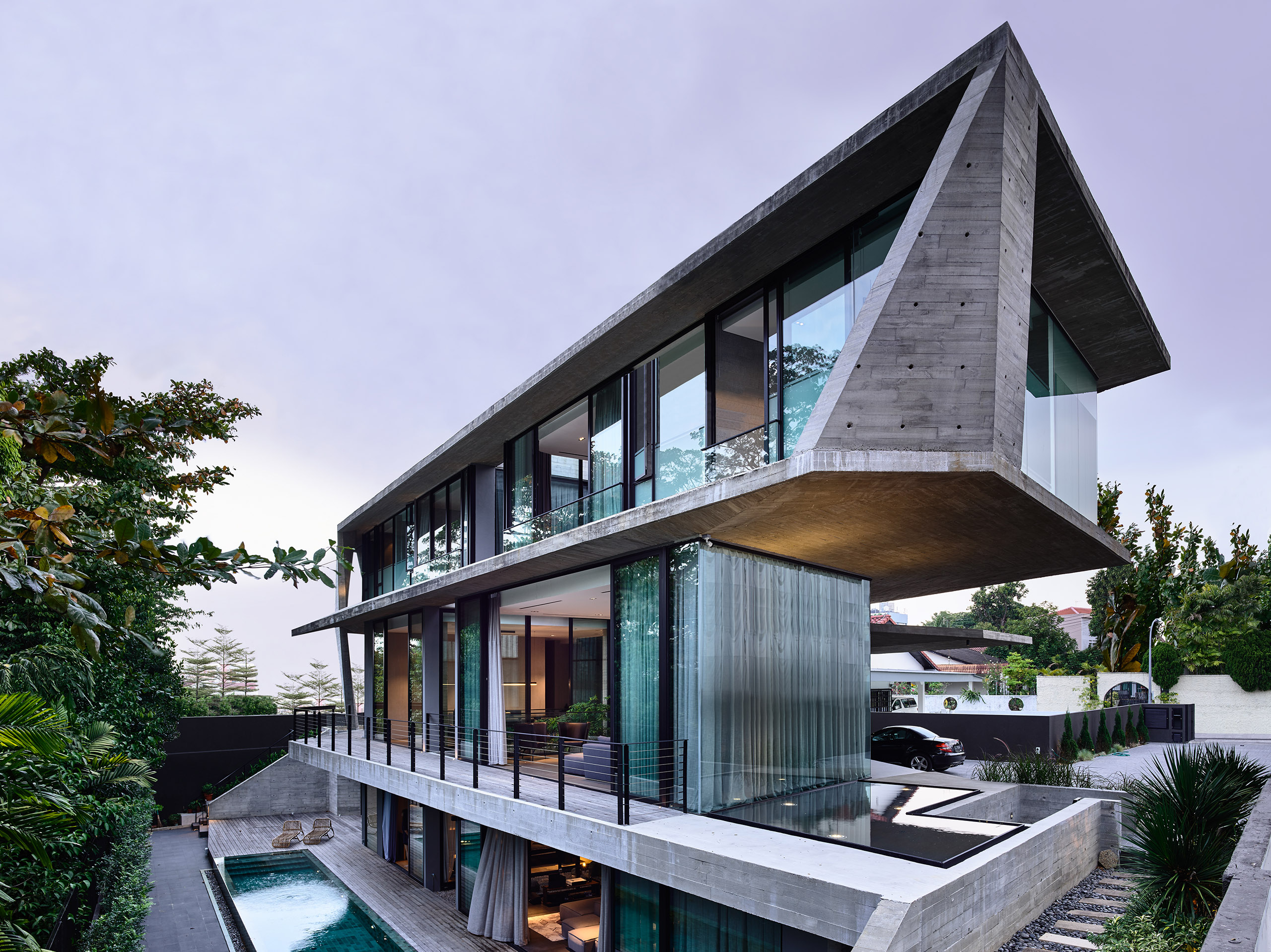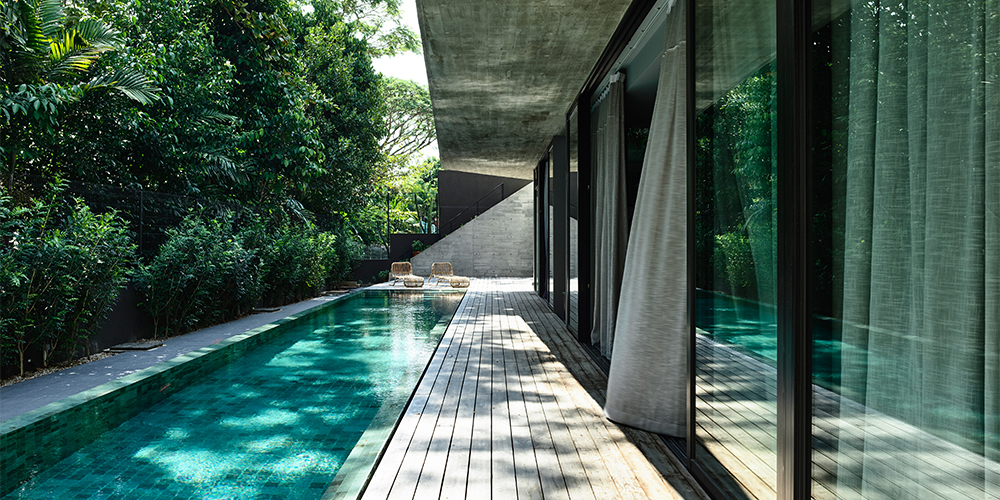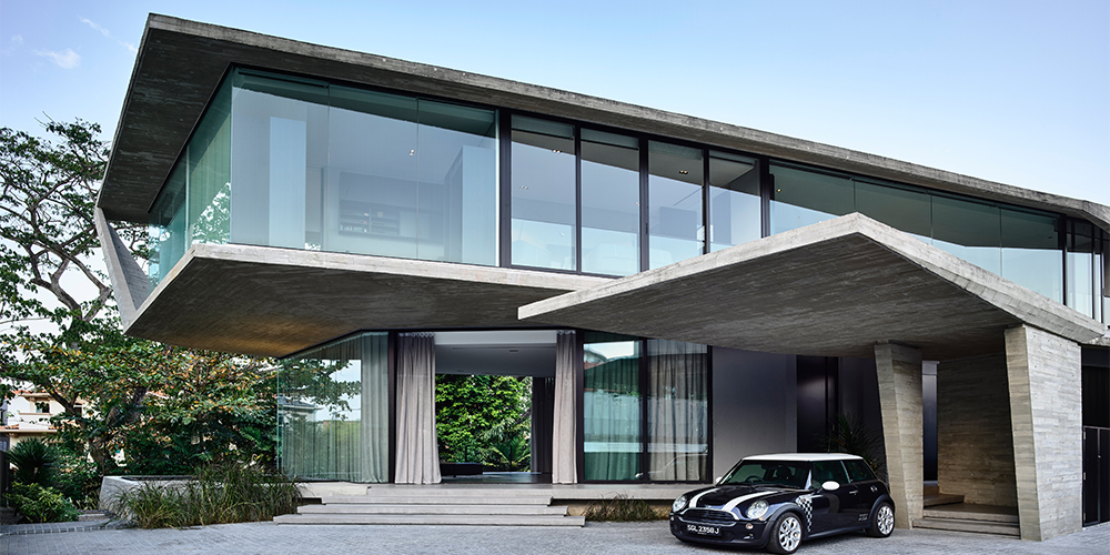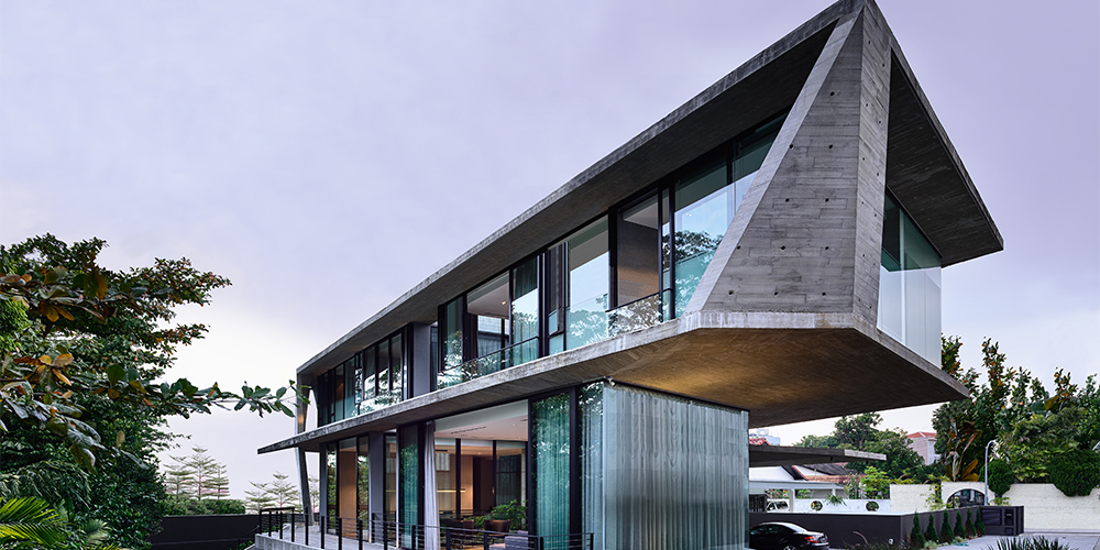 Stark House, as the project is named, is an attempt to break away from the architecture of the vicinity. Its unique layout takes into consideration the natural topography and greenery present on-site. The 9,600 sq ft plot size accommodates this 7000 sq ft Singaporean home—whose facade is designed such that it makes heads turn.