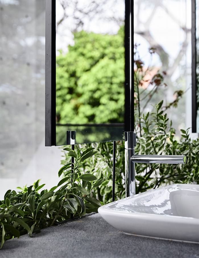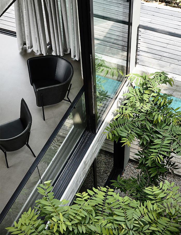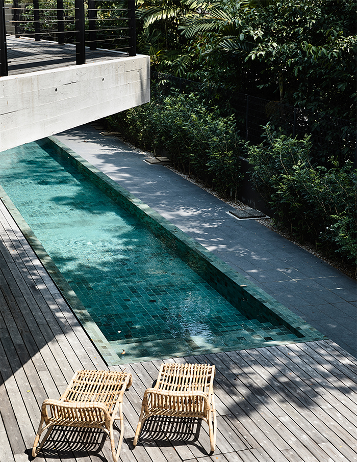 Further ahead, the dining room is revealed over a green courtyard with a stairway that leads to the level below. We love how the basement opens out to a green sanctuary complete with an outdoor swimming pool and a space for family activities and outdoor entertainment.
