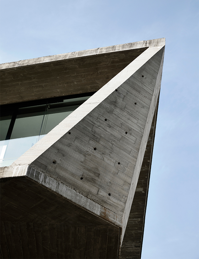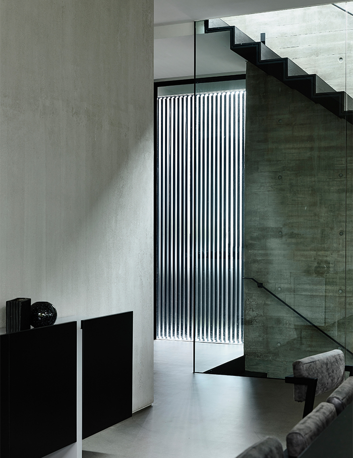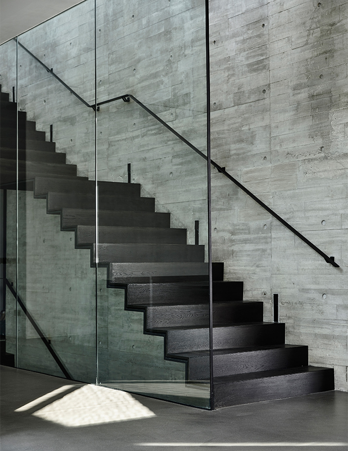 In the backdrop of the varied green hues present in the surroundings, the material palette for Stark House varies from board-form concrete, roughcast plaster, shades of deep grey, while black and subtle textural characteristics dominate this raw and earthy abode.