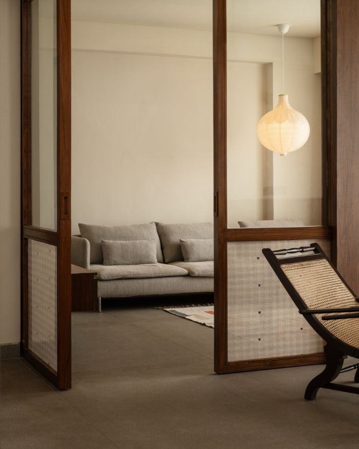 The apartment relishes minimalism, its spaces designed with versatility of function in mind; Photography by Harsheen Mengar