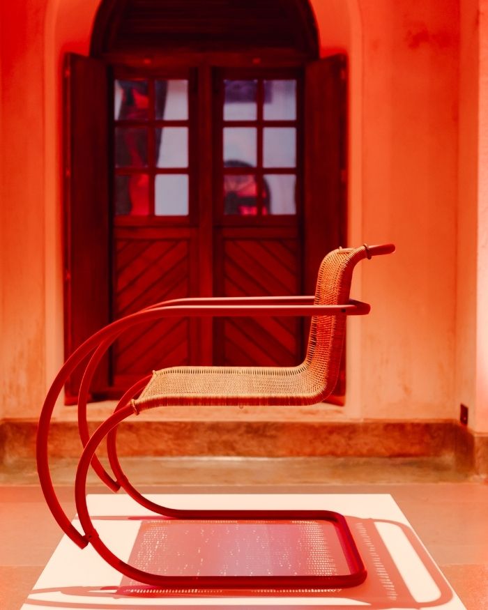 From the arrival point in a dense grove of trees, a shaded path flanked by orchards leads to RAAS Chhatrasagar designed by Delhi based Studio Lotus. An experience of discovery and an element of surprise is key to the identity of the hotel, which is perched atop a 150-year-old dam that forms a perennial rainwater lake, a surprising oasis less than three hours from Jodhpur.