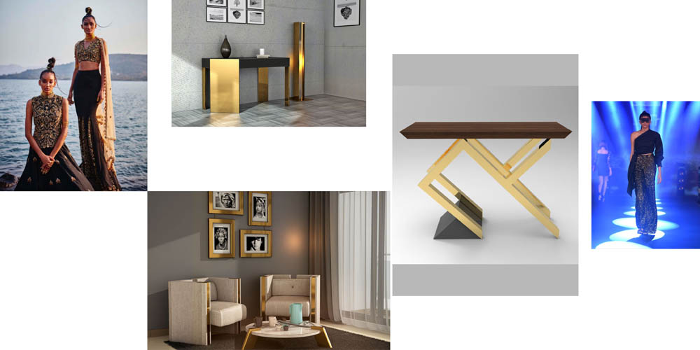 From couture to the couch, Nikhil introduces us into his starry world. “I am a student of psychology but I have dabbled in the various field of arts. While fashion was a field that was my comfort zone, taking the plunge into the field of interior design was in my top to-do list” he says. Glamorous, urban and sharp geometry illustrates Thampi’s silhouettes. Earlier this year, he forayed into interior design with his bespoke collection of furniture with Jaipur-based Hermosa Design Studio. The three-floored flamboyant store displays the signature collection emulating clean lines— think suede sofas with gilded metal or a cupboard bearing the brand’s logo that also doubles as a door handle. “A minimal yet impactful design drove the entire collaboration.”On being quipped on the one design principle that has been with since the beginning of his career, he says, “ I am not technically sound on designing. I have learned everything on the job. My principle is very instinctive. I had no formal training and because I had no rules to swear by, it was easier to break them. I have no inhibitions when it comes to design.” The reflection of which is his slick red carpet gowns and daring pantsuits.