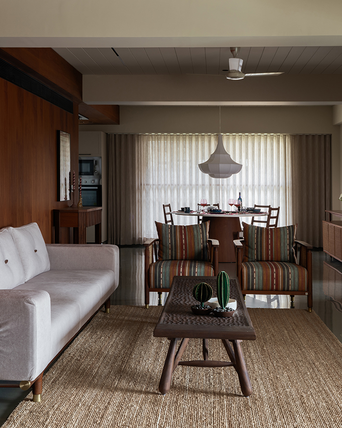 About the material palette, Kapoor says, “We’ve chosen a combination of wood and veneer along with varied materials and fabrics that are functional and graceful.”