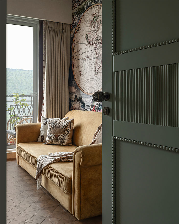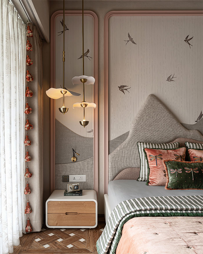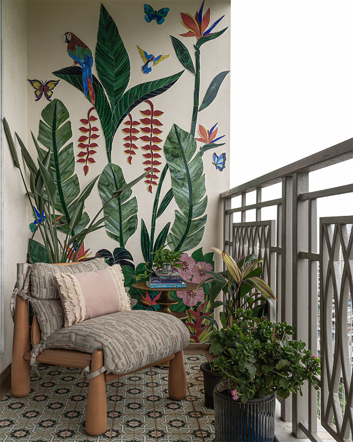 Designed by Shimona Bhansali of DesignHex, the space is envisioned as a richly expressive den for a family of four, along with two huskies, a cat and a chorus of thirty exotic birds. It is a self-contained ecosystem, alive with movement, colour and character.