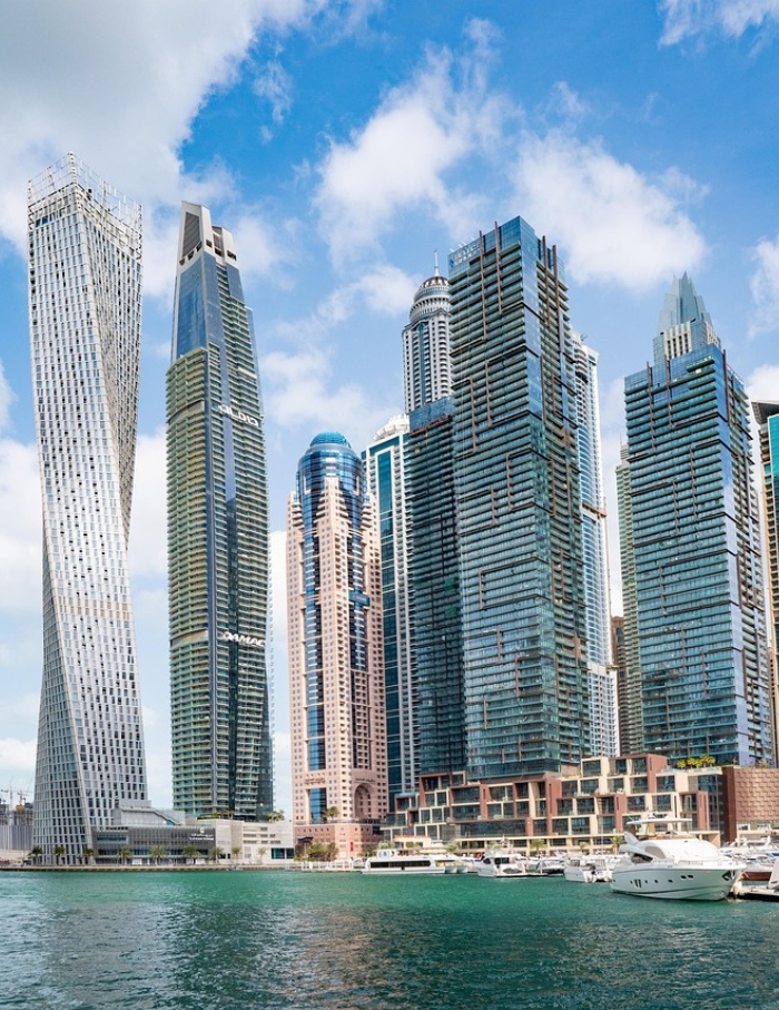 By day, Dubai’s architecture is bathed in understated elegance, its sleek, modern buildings reflecting the desert sun. The towering skyscrapers — with their facades and sculptural angles — are more than just places to live and work; they’re works of art in their own right. Structures like the Burj Al Arab, with its sail-like silhouette, or the Cayan Tower, twisting like a piece of fluid sculpture, feel as though they belong to another realm. They rise in defiance of gravity, they form a visual conversation between technology and art, creating an urban dream that seems to stretch far beyond the norms.