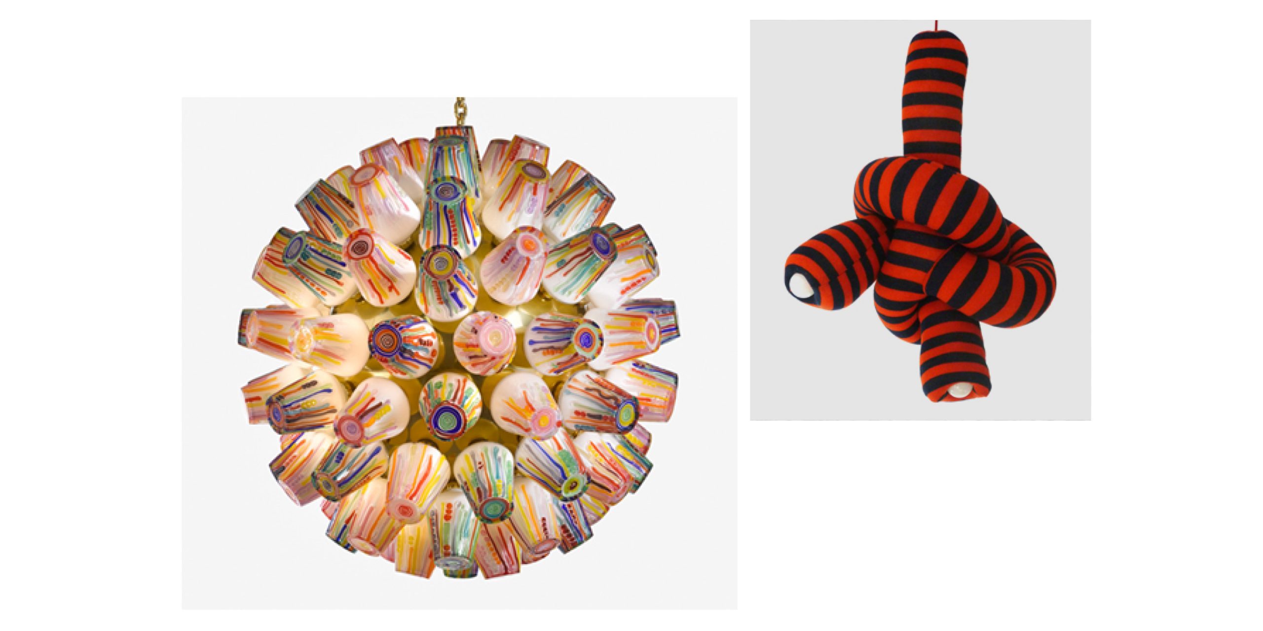 This unusual light by Annebet Philips is made of stuffed knitted fabric. Its soft form allows it to be tied in different ways.