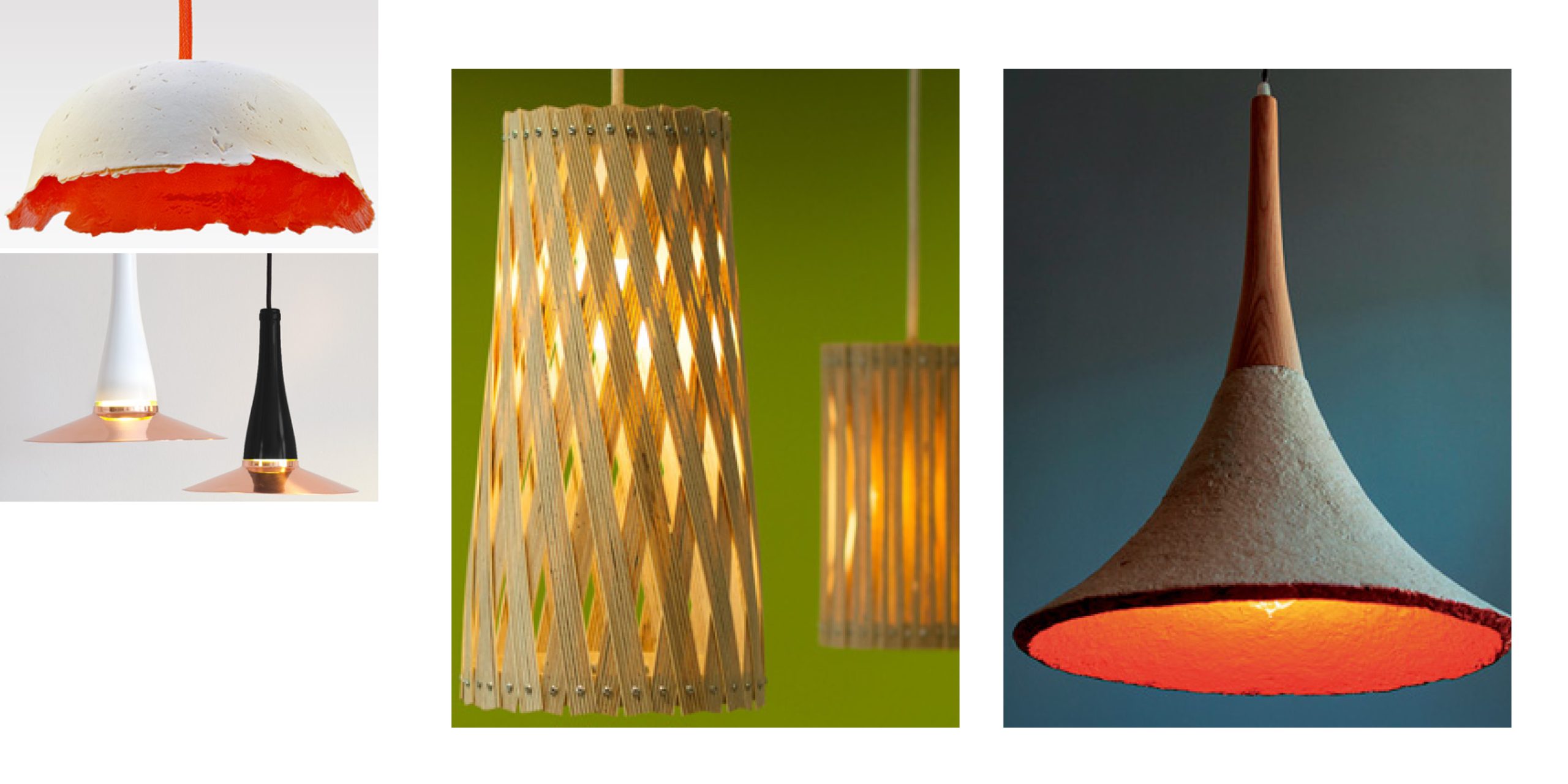 From scrap to sensational – suspend these treasures made from discarded and unused materials in your office or living spaces. Go on, light up the path to a better planet.1. Paperlain Designed by London based Ahsayane Studio, this lamp was crafted out of paper, ceramic and porcelain, wrapped on to cylindrical shaped then dried using traditional firing and ceramic glazing techniques.Website: www.ahsayane.com 2. Upcycle German artist Benjamin Spoth crafted the basket weave Upcycle pendant light from discarded birchwood. Website: www.benjaminspoth.com Photograph courtesy Wisse Trooster3. LaFlorEnvisioned by Nutcreatives for Spanish brand Lucirmas, this pendant was basically made out of copper plates and rehashed win bottles. Website: www.lucirmas.com Photograph courtesy Victor Max Photos4. Mycelium lamp This fixture was made using a material formed by blending agricultural waste and mycelium (mushroom roots), invented by New York firm Ecovative Design.Website: www.ecovativedesign.com Also read: This French artist makes vintage furniture from cardboard