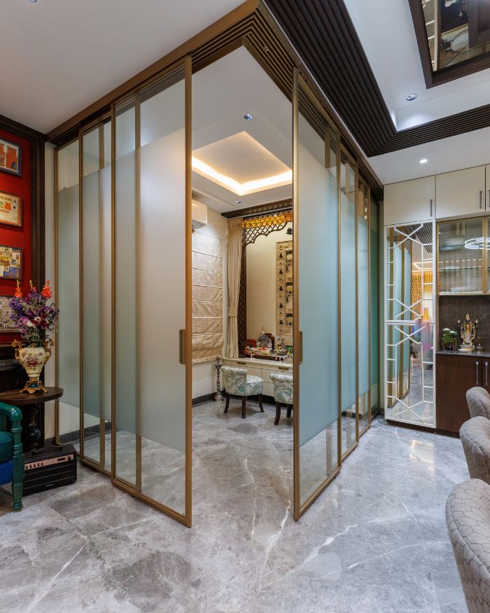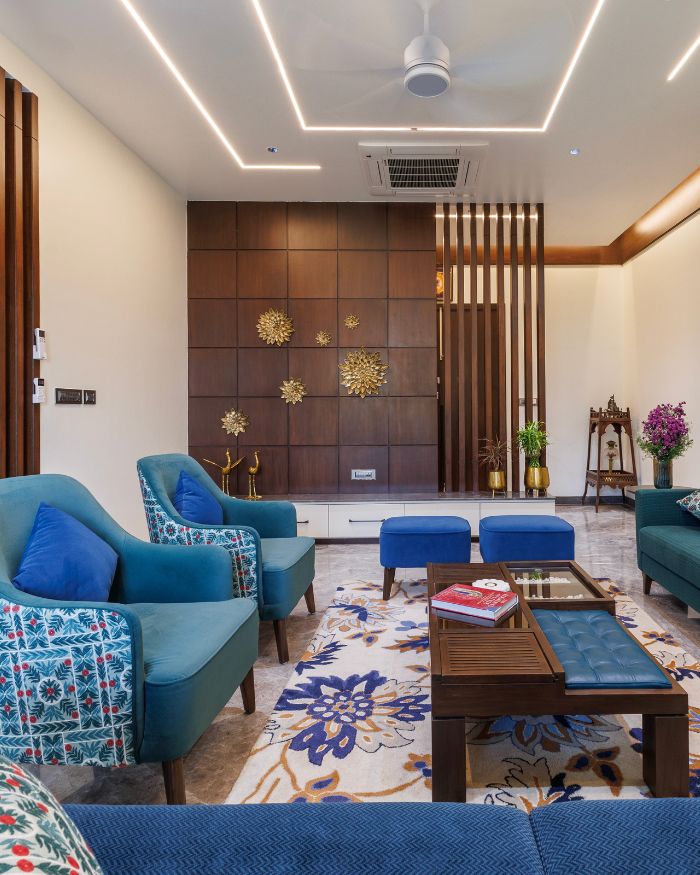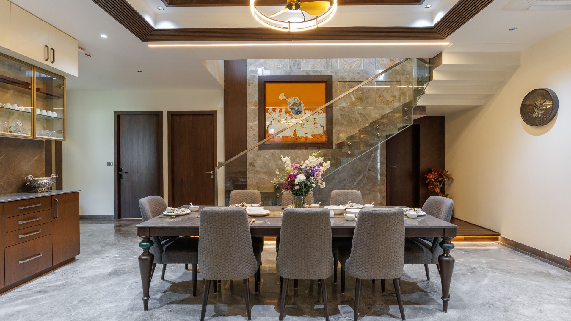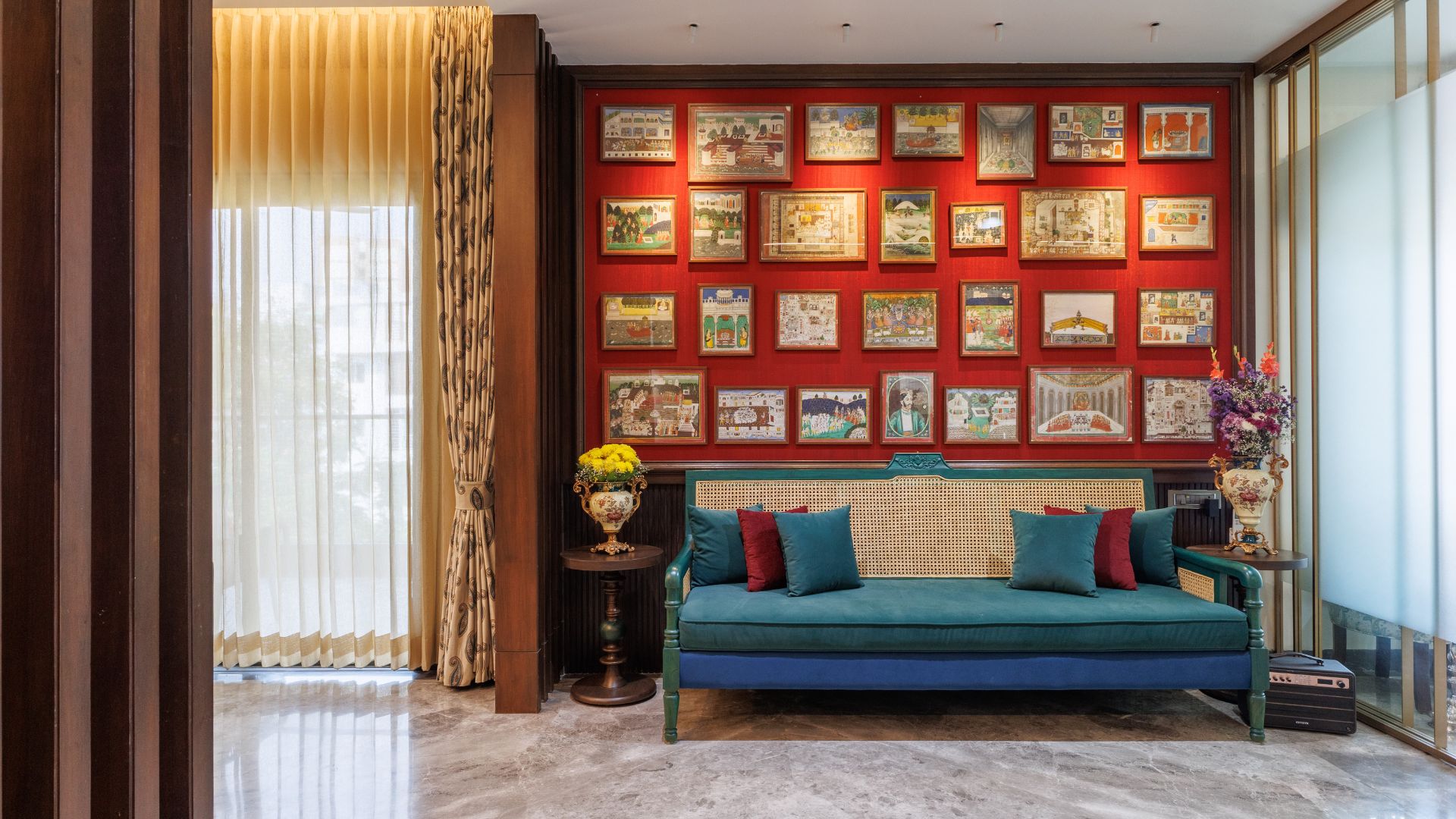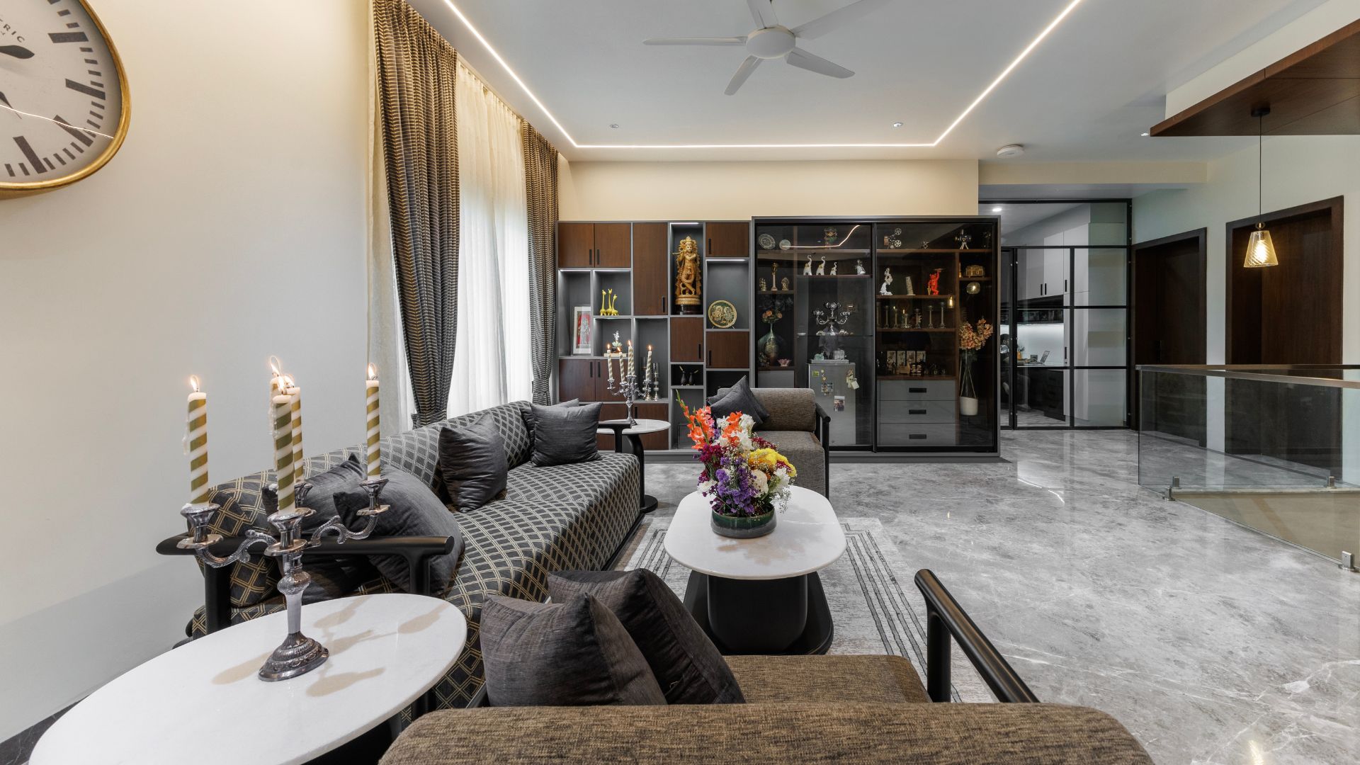 Better together. Spanning across 6,000 sq ft, Elite Spaces has crafted a multi-generational home in Hyderabad that keeps its residents and their needs at its fore. And yet, amidst a classic design language steered by a love for India’s rich heritage and Vaastu alike, it indulges in a surprising mix of aesthetics: melding Indian artistry with the crisp geometry of cubism, artistry of Pichwais with 21st-century statement pieces. This sentiment reflects itself in the layout, too, catering to both the family and the individual. While the common spaces make room for all to interact, the bedrooms let you fall away into a world curated just for you. Such is the duality of the home.