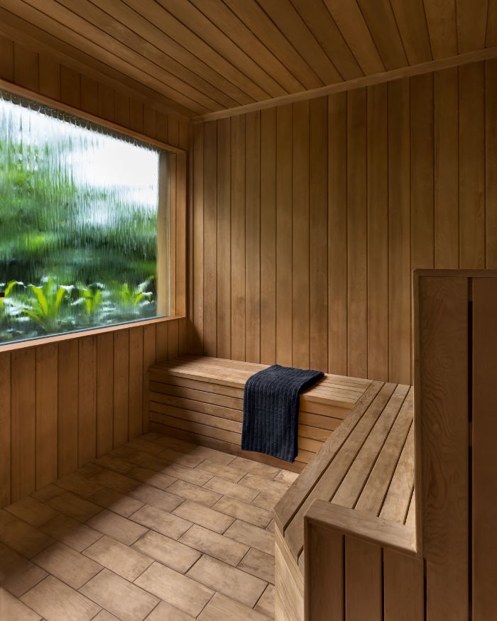 The natural green foliage acts as a ceiling here — smaller pockets of open-to-sky areas ensure the green-blue continuity, blurring the divide between the inside and outside. Each individual spa room comprises an open-to-sky shower area overlooking the great green expanse. These smaller spaces peppered around the retreat allow for one’s solitary connection to nature, as though for a brief healing moment, only you exist in the space.