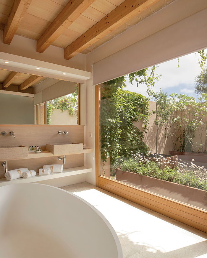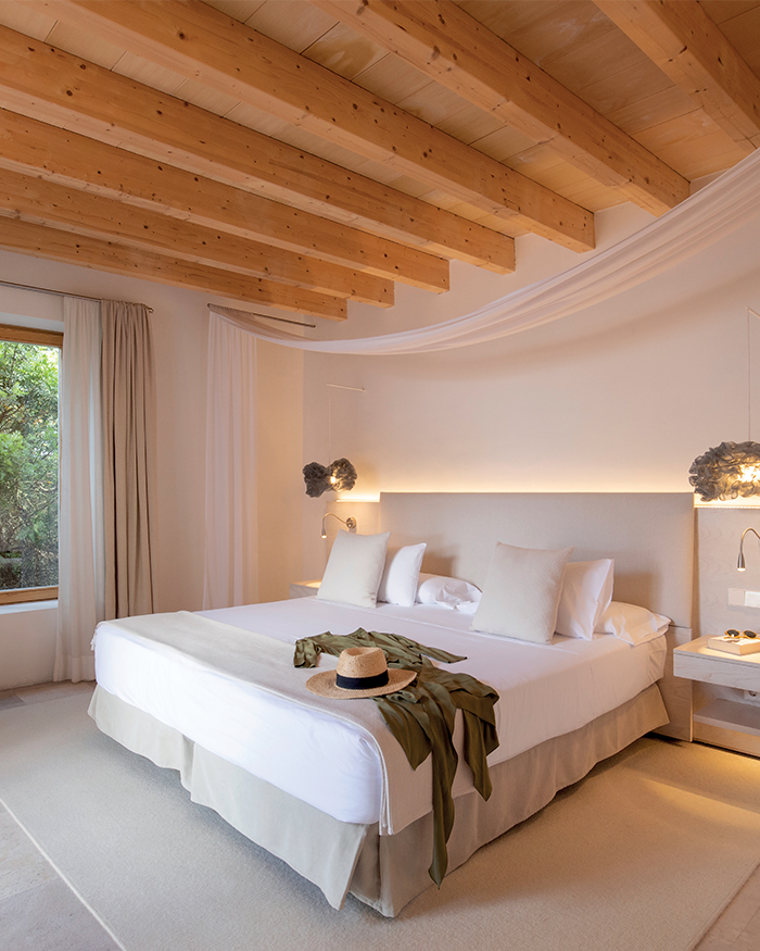 Located just beyond the Es Salobrar salt flats, Fontsanta feels like a pocket of still air rather than a destination. The buildings are low, honey-toned and open to the landscape, built of local limestone and lime plaster that seem to dissolve into the horizon. When we arrived, the staff gave us a short tour and, with gentle persistence, urged us to try the thermal springs first. That suggestion changed the pace of everything that followed. We agreed half-heartedly, still in work mode, planning to be in and out before checking our emails. But once we entered the warm mineral water that has flowed beneath this land for centuries, something shifted. The heat wrapped around us, steady and constant, slowing our pulse to match the quiet around it. The staff had said our bodies would know when to leave, and they were right. Minutes slipped without notice.