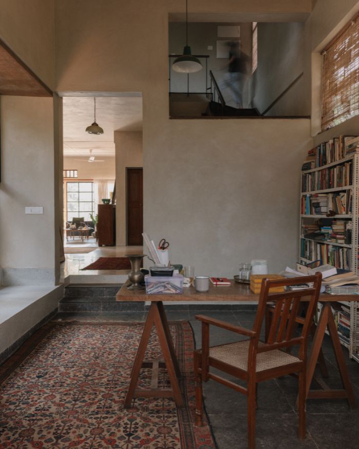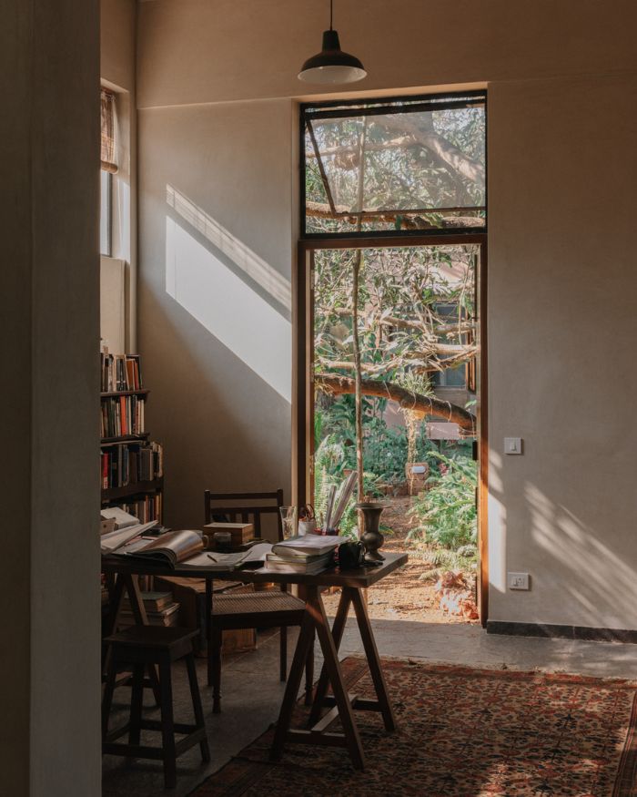There is a playful vigour to this home. One that feels reminiscent of cousins darting between verandahs in a spirited round of pakdam pakdai, before retreating to the shade with a chilled glass of juice. In the village of Corjuem in North Goa, this dwelling is embedded amid an existing vegetation terrain. Designed by principal architects Yatin Fulari and Teja Amonkar of Field Atelier as a constellation of verandahs, the architecture resists fixity, while spaces expand, overlap and assume multiple roles.