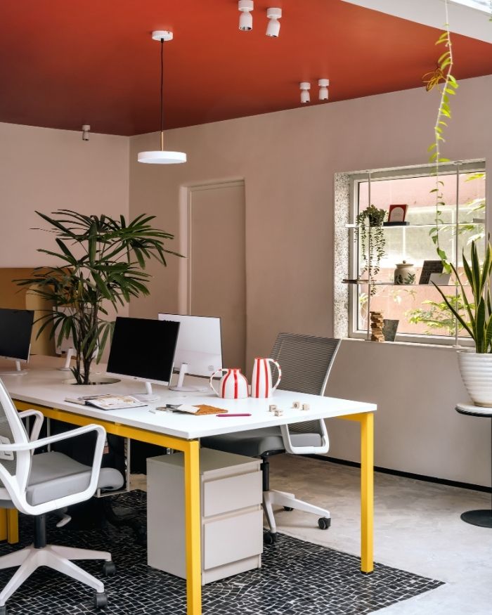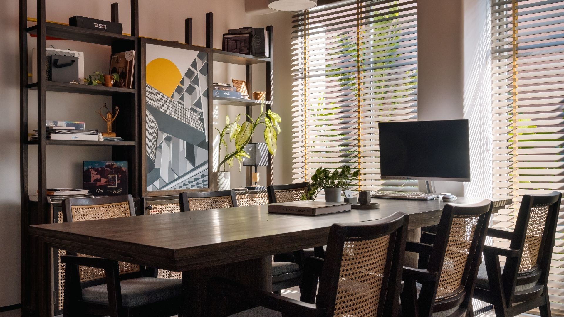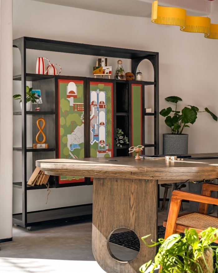 An office akin to being out in the open? It exists right in the heart of Surat, a workspace by Ground Zero. Think of the many tales in folk literature around the world that emerged from narrations passed down in open settings like community courtyards and atriums. Ground Zero ensured that their 2,000 sq ft workspace kindled a similar story reflecting their own tale of design β a raw, rustic, nature-bound inspiration interspersed. The story started with redeveloping a dilapidated bungalow. βThe name Vrukshaangan meaning a courtyard of trees perfectly captures the essence of our studio space,β say principal designers, Sagar Rathod, Mansi Rathod and Ritika Uttamchandani.
