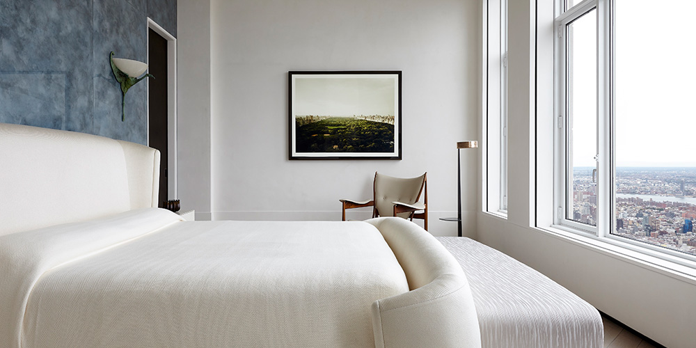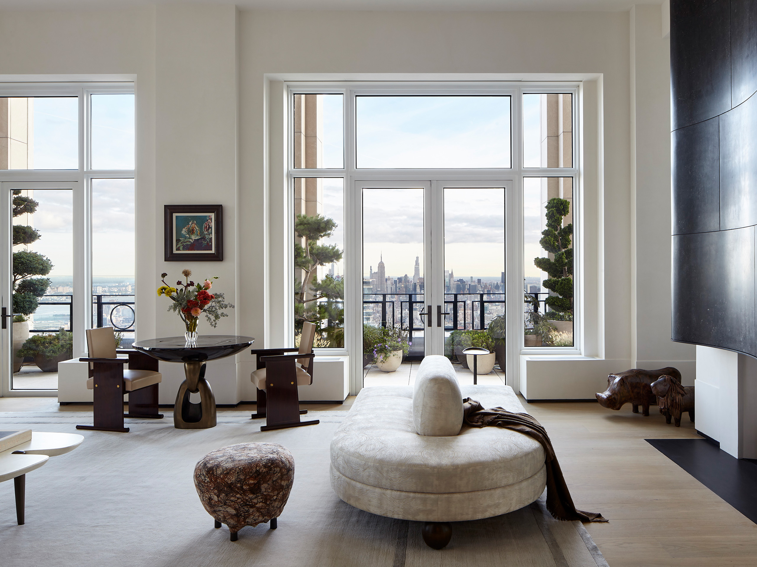 Hines Collective emphasises the Manhattan cityscape, where every other nook of the home is stamped with floor-to-ceiling windows. Tucked on a rather soaring height, the vibrant movements of the city seem to quiet down, transforming into a postcard view.