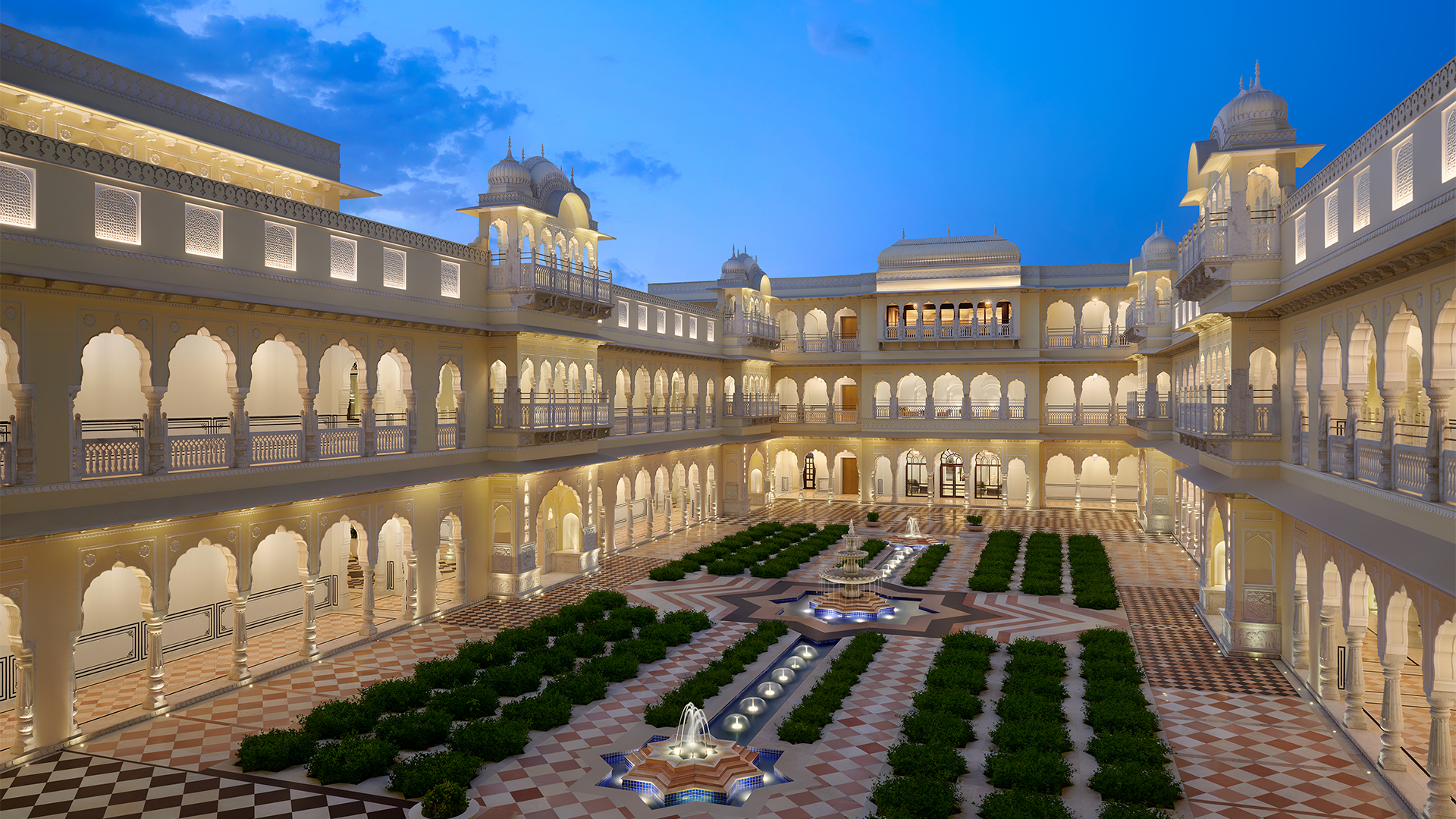Beyond the facade, Hyatt Regency Jaipur Mansarovar reveals a series of orchestrated spaces, echoing a different side to Jaipur’s architectural and cultural finesse. At its heart lies the central courtyard, contoured by carved pillars, jharokhas and water features, designed to slow the pace and invite quiet observation. Corridors open up from here like cloisters, offering shifting perspectives of light, shadow and ornament as the day progresses.