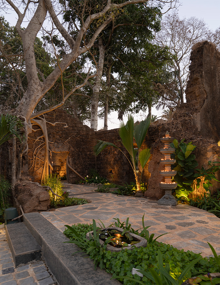 Rebirth of ruins. This reasonably fantastical combination of words shapes the pulse of Sanctuary Bar & Kitchen in Goa, which exists quite literally amidst the ruins of a 200-year old Portuguese villa. While the restaurant’s appearance could seem to be a case of architectural serendipity, its intention is simple. To repurpose its ancient, natural landscape for diners to experience the restaurant beyond its menu. To witness moments of built and unbuilt flavours.